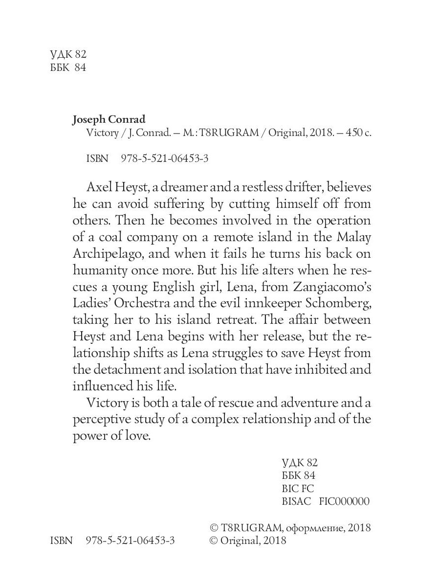 Victory is both a tale of rescue and adventure and a perceptive study of a complex relationship and of the power of love.