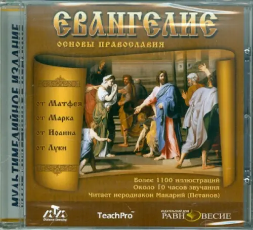 Евангелие (греч. - благая весть) - общее название первых четырех книг Нового Завета, благовествующих о жизни и учении Иисуса Христа, явившегося для спасения человечества. Перед Вами мультимедийное издание Евангелия, которое облегчает знакомство со Священной книгой и позволяет более глубоко проникнуть в текст Священного Писания. Евангелие звучит на фоне русской православной церковной музыки. Одновременно со звуком, на экран выводится канонический православный (синодальный) текст стихов на русском (или, по выбору, на греческом) языке, представляются библейские сюжеты из произведений известных мастеров русской и зарубежной иконописи и живописи, фотографии святых мест и т. п. Удобная организация материала позволяет Вам легко переходить от одной главы и стиха к другим главам и стихам, повторно просматривать (прослушивать) отдельные фрагменты, делать "закладки" и т. д. Система поиска по ключевым словам и фразам позволяет легко найти интересующие Вас стихи из Евангелия. Яркие и красочные образы в сочетании с проникновенным чтением текста позволяют более глубоко осмыслить суть сказанного в Евангелии. Это особенно важно и полезно для детей школьного возраста и всех, кто начинает приобщаться к Слову Божьему или познает основы своей духовной культуры и воспитания. Вы услышите Евангелие от Матфея, Марка, Иоанна, Луки. Читает иеродиакон Макарий (Петанов). Общая продолжительность озвученного материала - 8 ч. 18мин. Общее количество иллюстрирующих окон, произведений живописи (или фрагментов из них), фотографий святых мест и т. д. - более 1100. Общее количество ключевых и поисковых слов - более 400. Системные требования: Pentium II, 256Mb ОЗУ, Windows 98/2000/XP, звуковая карта, колонки, наушники.