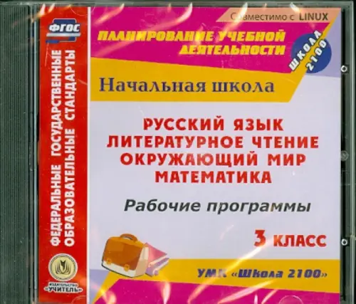 Предлагаемый диск содержит систематизированный материал в виде рабочих образовательных программ по русскому языку, литературному чтению, математике и окружающему миру для 3 класса, разработанных в соответствии с основными положениями Федерального государственного образовательного стандарта начального общего образования и ориентированных на работу по системе учебников "Школа 2100".