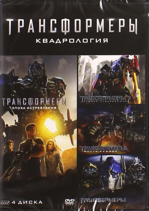 Фильмы, повествующие о войне между инопланетными разумными машинами, вошли в историю фантастического кинематографа и стали явлением масс-культуры XX века. Все начиналось 11 миллионов лет назад… Раса квинтессонов, населявшая планету Кибертрон, открыла новый источник энергии, подаривший разум пилотируемым роботам. Они начали производство боевых роботов (десептиконов) и роботов-рабочих (автоботов), которых заставляли сражаться между собой. В конце концов роботы восстали против своих хозяев, и в разразившейся войне квинтессоны были изгнаны со своей планеты… Продолжительность жизни трансформеров велика - она исчисляется миллионами лет. Так что у нас есть все шансы увидеть продолжение этой удивительной истории! Ну а пока есть возможность пересмотреть все части фантастической саги, вышедшей в одном издании! «Трансформеры», «Трансформеры. Месть падших», «Трансформеры. Темная сторона Луны», «Трансформеры. Эпоха истребления» - переживите еще раз трансформерский бум. Продолжительность: 587 минут. Звук: Dolby Digital 5.1, 2.0 Язык: русский, английский, украинский Формат: 2.40:1 Регион: 5, PAL Субтитры: русские, английские, украинские. Не рекомендовано для просмотра лицам моложе 16 лет.