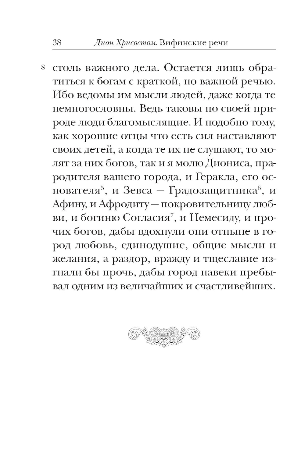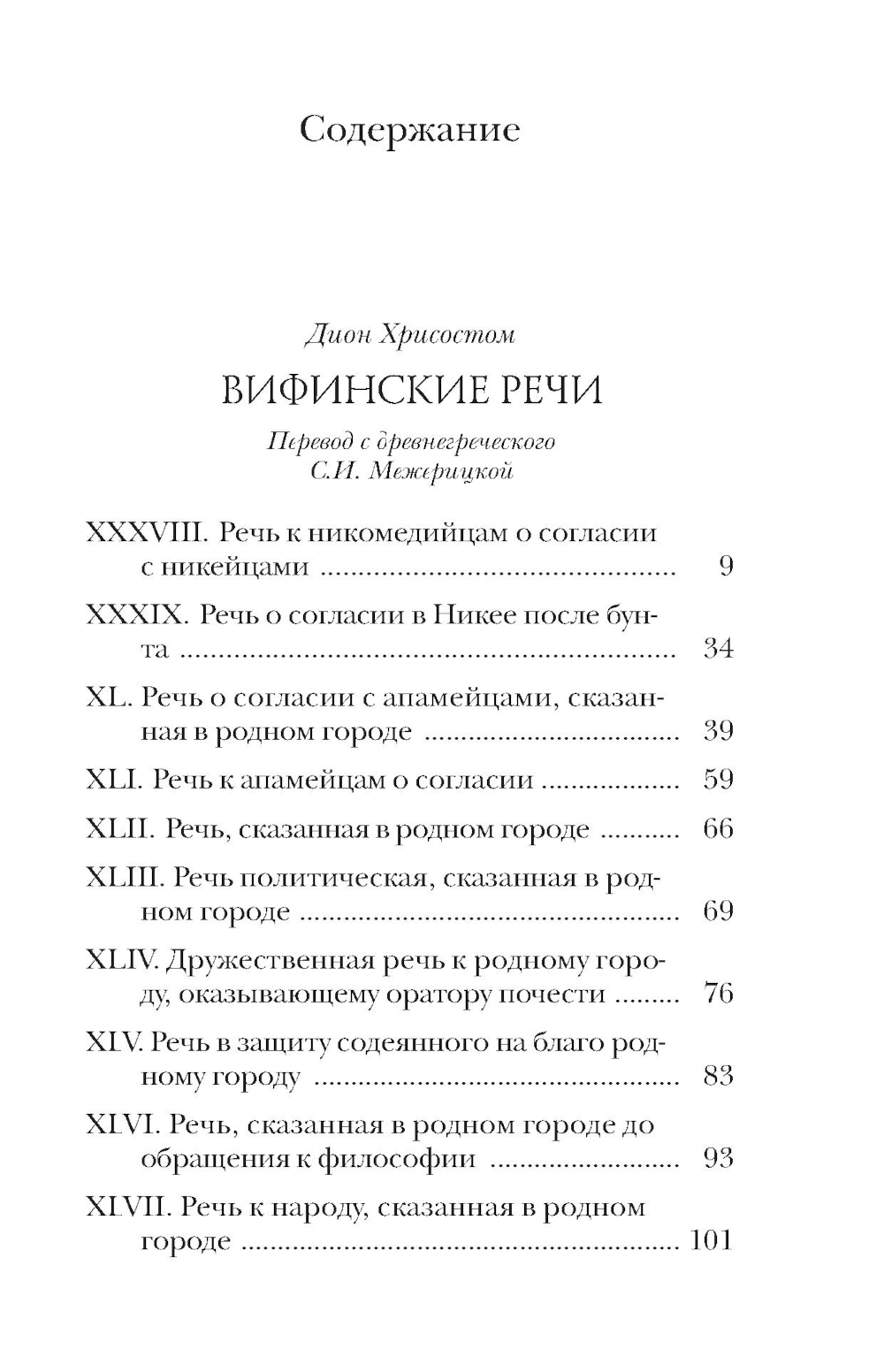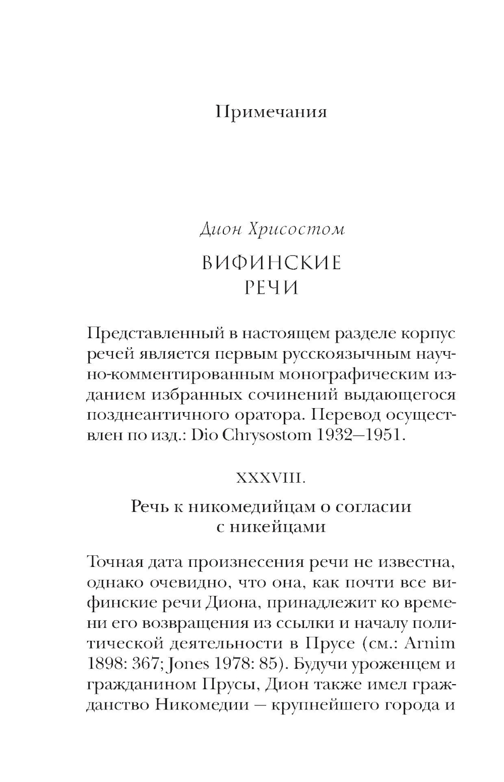 Впервые на русском языке публикуются «Вифинские речи» - центральный корпус произведений крупнейшего греческого оратора и софиста I в. н. э. Диона Хрисостома. Эти удивительной красоты, изящные и в то же время стилистически строгие тексты - вершина творческого пути одного из величайших ораторов античного мира, по праву прозванного Златоустом. Интересны они и тем, что близко знакомят нас с жизнью греческого населения восточной части Римской империи - его нравами, обычаями и порядками, являясь наряду с сочинениями Плутарха, Лукиана, Афинея и других известных греческих писателей ценнейшим историко-культурным свидетельством об эпохе поздней античности. Полнее погрузиться в запечатленный в речах мир позволяет сопроводительная статья С.И. Межерицкой, содержащая подробный обзор биографии и творчества оратора, а также историю их позднейшего изучения и рецепции, учитывающая все важнейшие классические и современные труды западноевропейских и отечественных ученых, посвященные Диону Хрисостому. Кроме того, издание снабжено обширным справочно-библиографическим аппаратом: подробными историко-филологическими комментариями, аннотированным указателем и альбомом иллюстраций, позволяющим читателю составить более ясное представление об описываемых в речах античных реалиях. Ранее С.И. Межерицкая подготовила для серии «Литературные памятники» два тома Элия Аристида: «Священные речи. Похвала Риму» и «Надгробные речи. Монодии». Рекомендуется широкому кругу читателей.| Издательство | Ладомир |