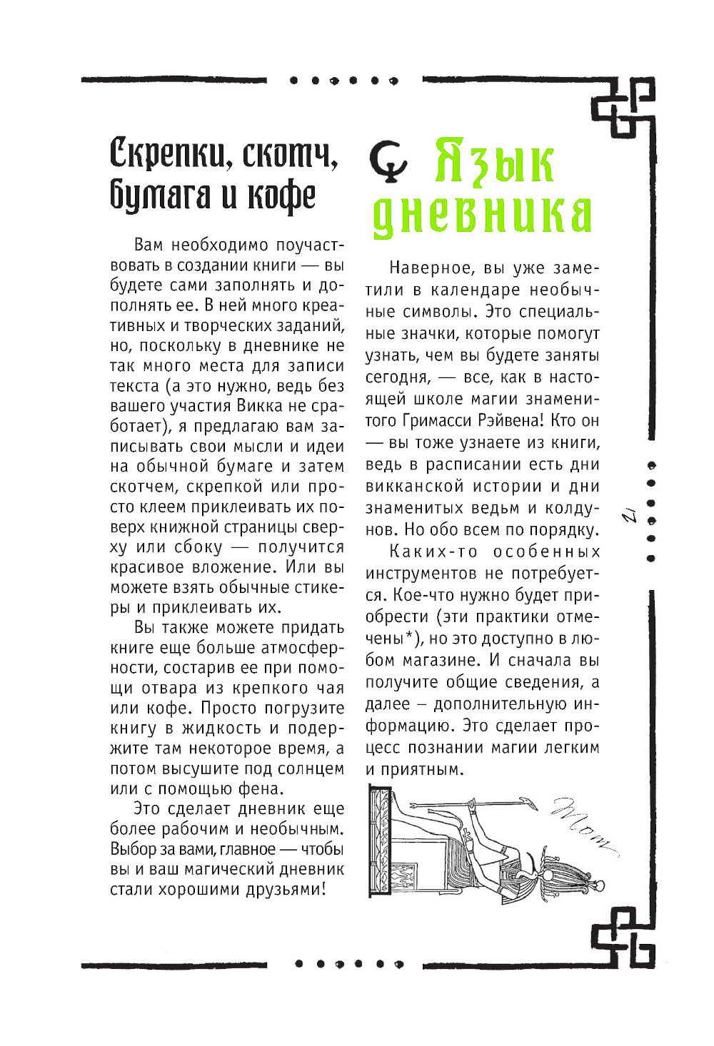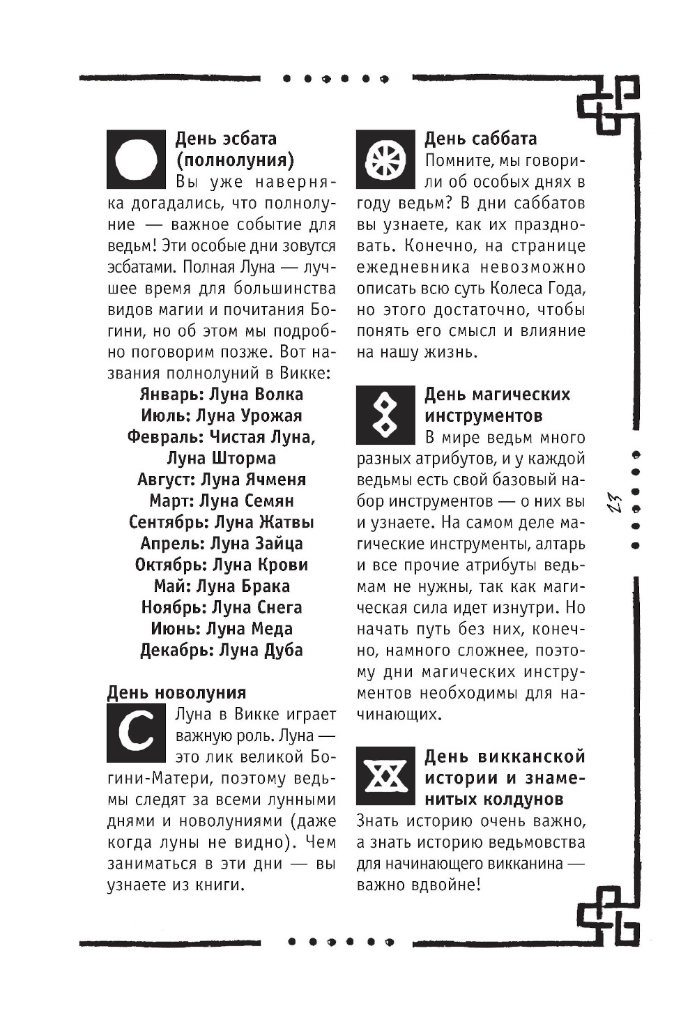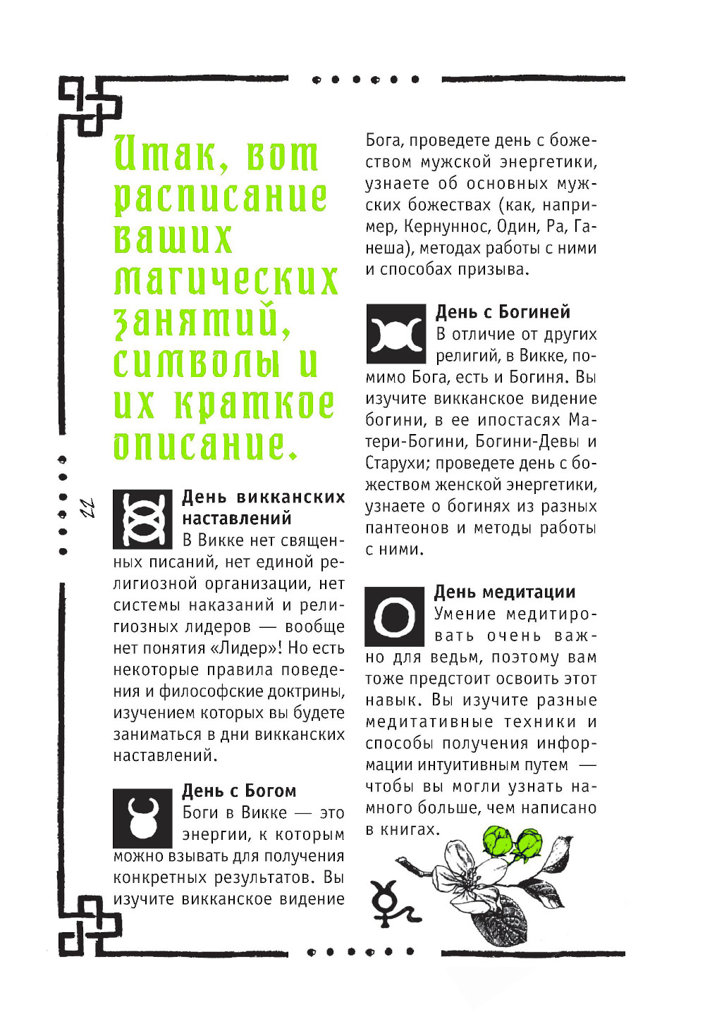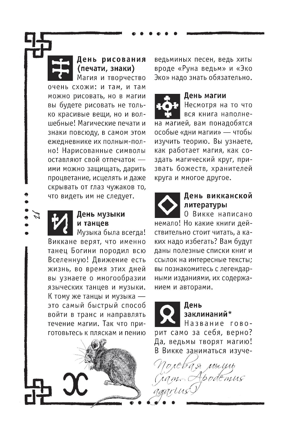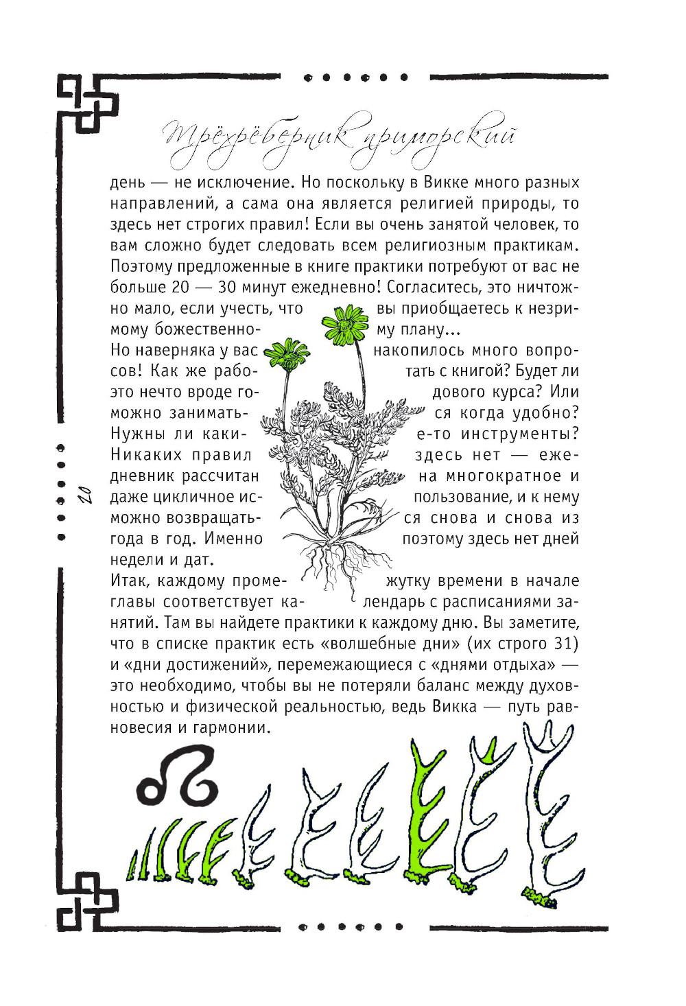 Книга-ежедневник посвящена Викке. В основе этого магического учения лежит почитание природы, а также природных явлений, растений и животных. Те, кто практикует Викку, убеждены, что смена времен года задумана природой неслучайно: каждый сезон, каждый месяц несет людям свои уроки. Задумывались ли вы, почему весной нам хочется начать новую жизнь, летом - как можно реже бывать дома, а зимой, наоборот, чаще проводить время с родными и близкими?.. Природа мудра и дает нам то, что нужно в данный момент жизни. Этот ежедневник станет отличным инструментом для гармонизации с природой, ее ритмами. В нем вы найдете множество заданий, ритуалов, магических практик и викканских обрядов. Предложенные в книге практики потребуют от вас не больше 20-30 минут в день - так что даже занятые люди смогут работать по этому ежедневнику! Благодаря ему вы получите необходимый прилив сил, радость, энергию, начнете максимально продуктивно использовать свое время - и вдохновитесь на то, чтобы стать ближе к природе. Ежедневник рассчитан на многократное использование: к нему можно возвращаться снова и снова, из года в год. И помните: в Викке нет строгих правил! Вы можете начинать с любого дня, ведь год «крутится», возвращаясь на круги своя. Внутри вы найдете потрясающе красивые рисунки и иллюстрации, сделанные автором. Каждая страница в книге оформлена индивидуально.| Издательство | ИГ Весь |