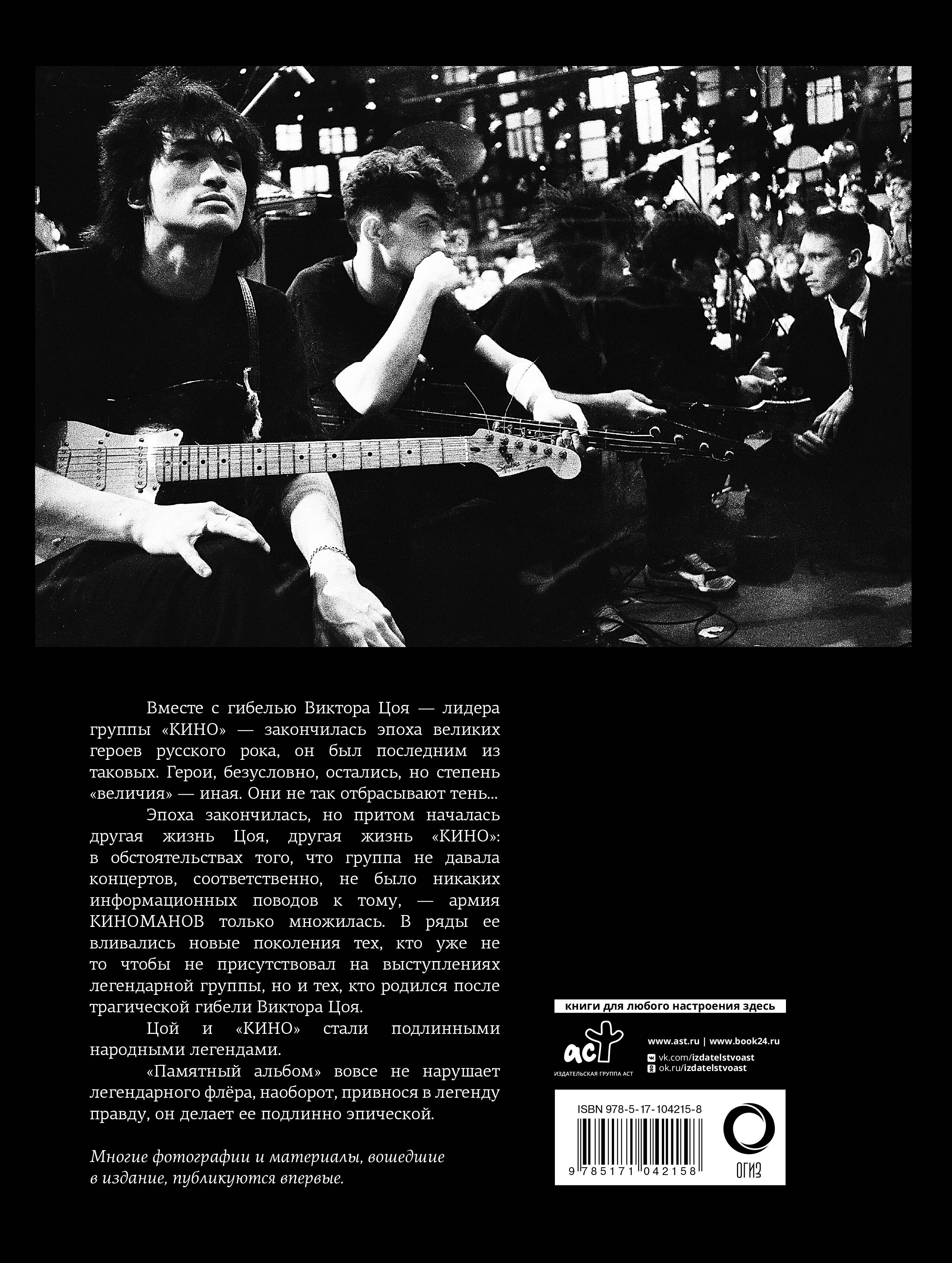 Вместе с гибелью Виктора Цоя - лидера группы "КИНО" - закончилась эпоха великих героев русского рока, он был последним из таковых. Герои, безусловно, остались, но степень "величия" - иная. Они не так отбрасывают тень... Эпоха закончилась, но притом началась другая жизнь Цоя, другая жизнь "КИНО": в обстоятельствах того, что группа не давала концертов, соответственно не было никаких информационных поводов к тому - армия КИНОМАНОВ только множилась. В ряды ее вливались новые поколения тех, кто уже не то чтобы не присутствовал на выступлениях легендарной группы, но и тех, кто родился после трагической гибели Виктора Цоя. Цой и "КИНО" стали подлинными народными легендами. "Памятный альбом" вовсе не нарушает легендарного флёра, наоборот, привнося в легенду правду, он делает ее подлинно эпической. Многие фотографии и материалы, вошедшие в издание, публикуются впервые.| Издательство | ИЗДАТЕЛЬСТВО "АСТ" |