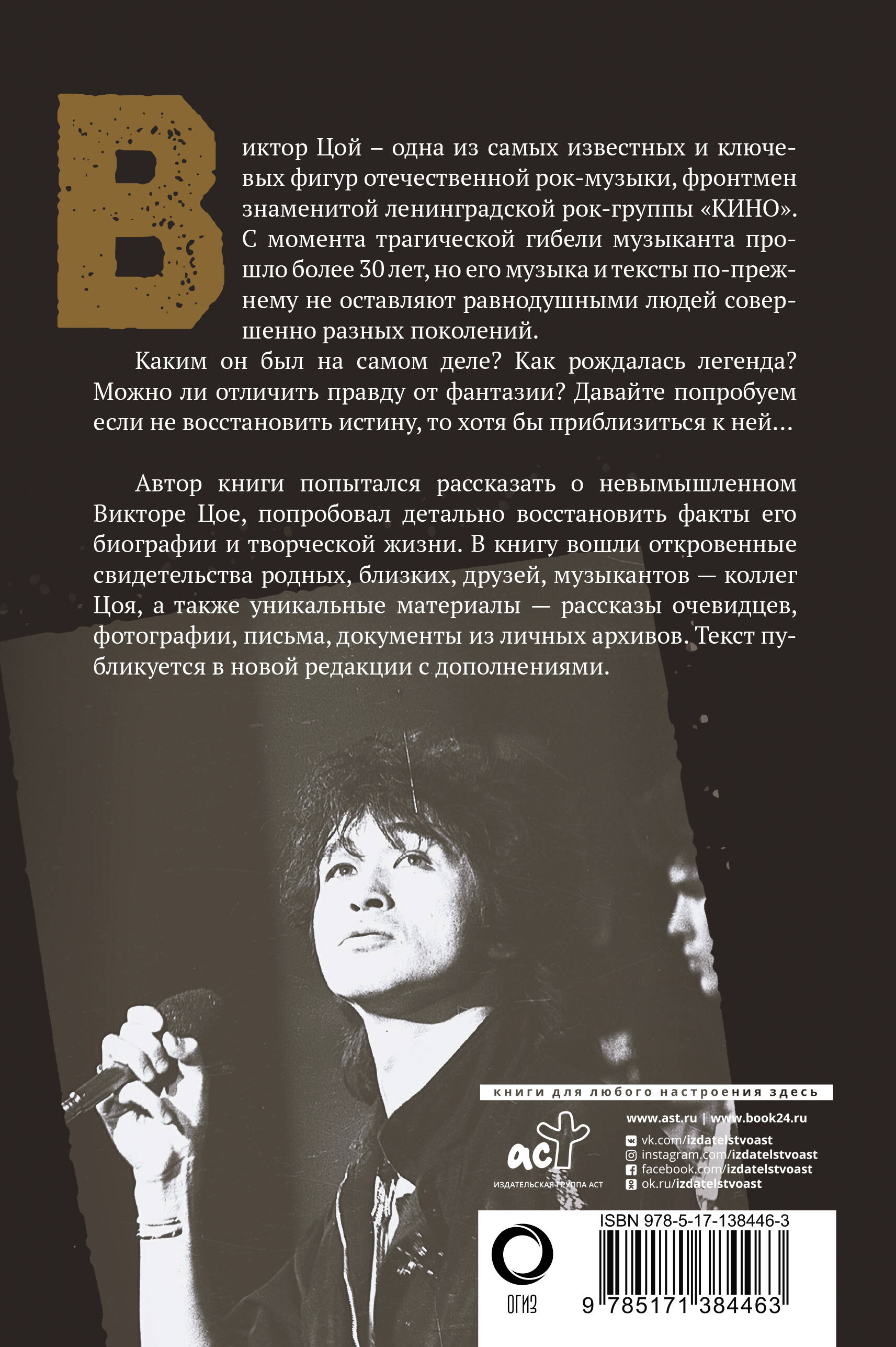 Виктор Цой - одна из самых известных и ключевых фигур отечественной рок-музыки, фронтмен знаменитой ленинградской рок-группы "КИНО". С момента трагической гибели музыканта прошло более 30 лет, но его музыка и тексты по-прежнему не оставляют равнодушными людей совсем разных поколений. Каким он был на самом деле? Как рождалась легенда? Можно ли отличить правду от фантазии? Давайте попробуем если не восстановить истину, то хотя бы приблизиться к ней… Автор книги попытался рассказать о невымышленном Викторе Цое, попробовал детально восстановить факты его биографии и творческой жизни. В книгу вошли откровенные свидетельства родных, близких, друзей, музыкантов - коллег Цоя, а также уникальные материалы - рассказы очевидцев, фотографии, письма, документы из личных архивов. Текст публикуется в новой редакции с дополнениями.| Издательство | Издательство "АСТ" |