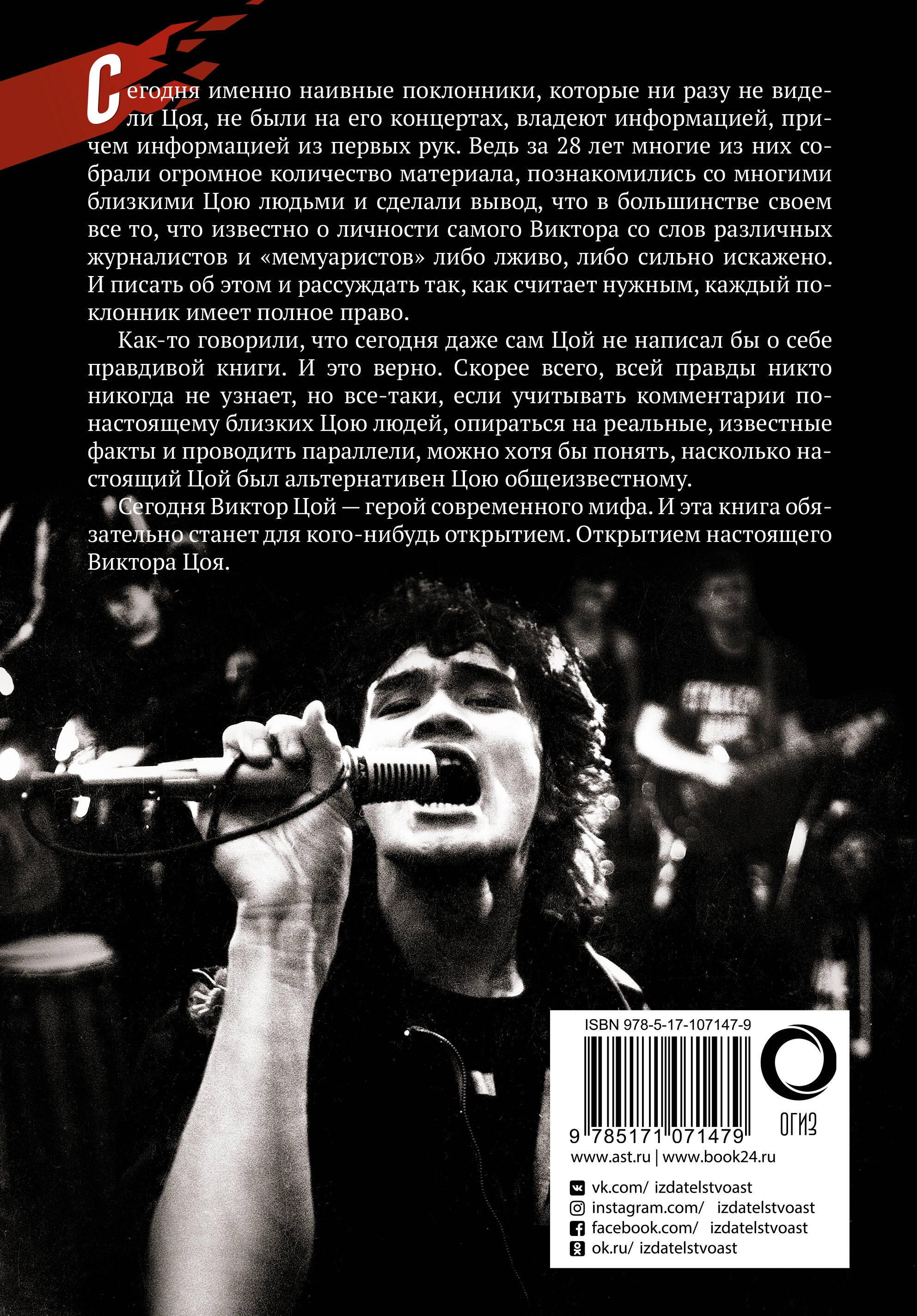 Виктор Цой. Это имя стало легендой для нескольких поколений молодых людей. Каким он был на самом деле? Где заканчивается правда и начинает твориться легенда? Давайте попробуем если не восстановить истину, то хотя бы приблизиться к ней. Автор книги попытался рассказать о невымышленном Викторе Цое, попробовал детально восстановить факты его биографии и творческой жизни. Впервые в таком объеме публикуются откровенные свидетельства родных, близких, друзей, музыкантов - коллег Цоя, а также уникальные материалы - рассказы очевидцев, фотографии, письма, документы из личных архивов.| Издательство | Издательство "АСТ" |