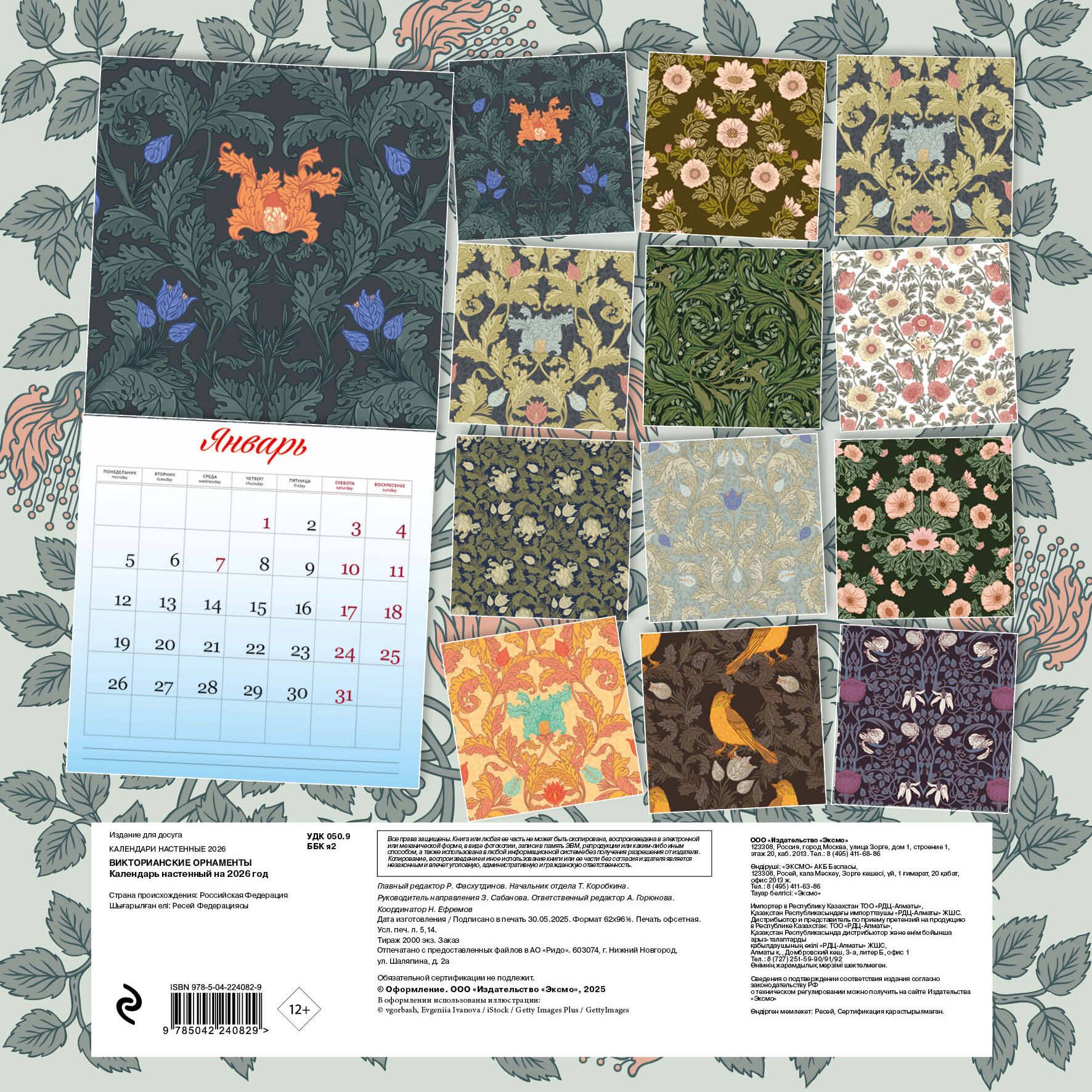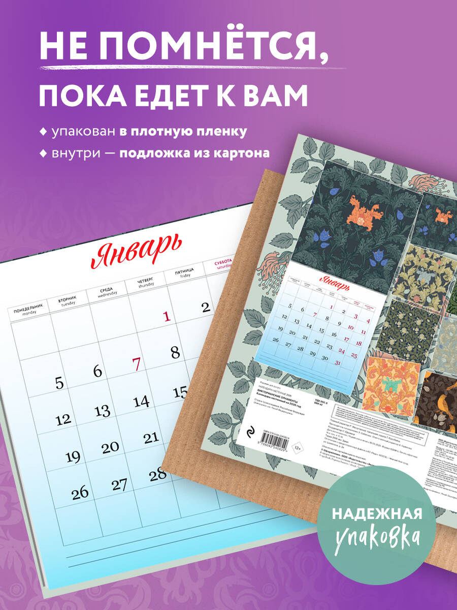 Изысканный настенный календарь, погружающий в атмосферу утончё-енного XIX века. Каждый месяц украшен детальными ботаническими иллюстрациями в стиле старинных гравюр, дополненными изящными узорами и календарной сеткой. Удобный формат, плотная матовая бумага и благородная цветовая гамма создают ощущение антикварного альбома. Прекрасный выбор для ценителей классического искусства, винтажного дизайна и изящных деталей. Элегантность вне времени - для тех, кто ищет красоту в каждой странице! О серии: Наши настенные календари отличаются высоким качеством исполнения! Тщательно подобранные иллюстрации, напечатанные на глянцевой бумаге высочайшего качества, станут настоящим украшением дома, а в календарной сетке найдется место для ваших планов: большие клетки позволят делать записи и организовать свой год! В календаре также отмечены государственные праздники. В серии настенных календарей издательства «ЭКСМО» каждый найдет тему по вкусу: великие художники, великолепные подборки с самыми знаменитыми произведениями искусства, герои всеми любимых мультфильмов. Для кого: Высокое качество полиграфического исполнения прекрасно дополняет репродукции шедевров живописи, что непременно будет по достоинству оценено людьми с хорошим вкусом. Технические параметры: - Тип календаря - настенный перекидной. - Год - 2026. - Календарная сетка - с разбивкой по месяцам. - Вид скрепления - скрепка. - Ширина - 30 см. - Высота - 30 см. - Внутренний блок - мелованная бумага 115 г/м2. - Подложка - плотный гофрокартон для поддержания формы. - Индивидуальная упаковка в плотный целлофановый пакет.| Издательство | ООО "Издательство "Эксмо" |