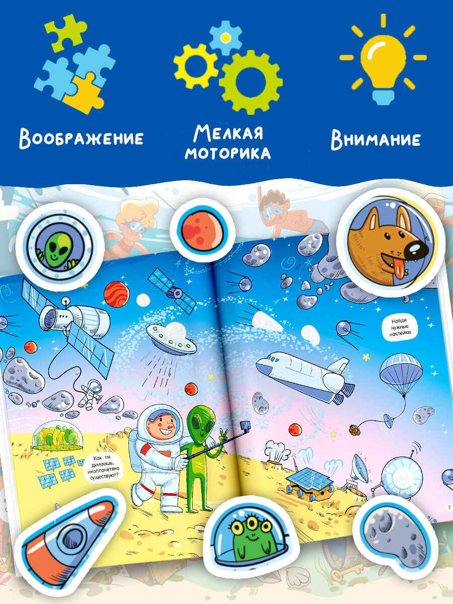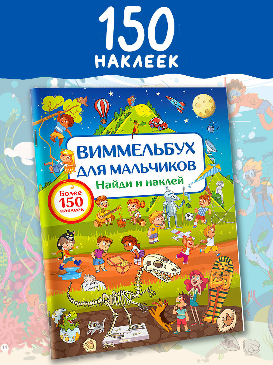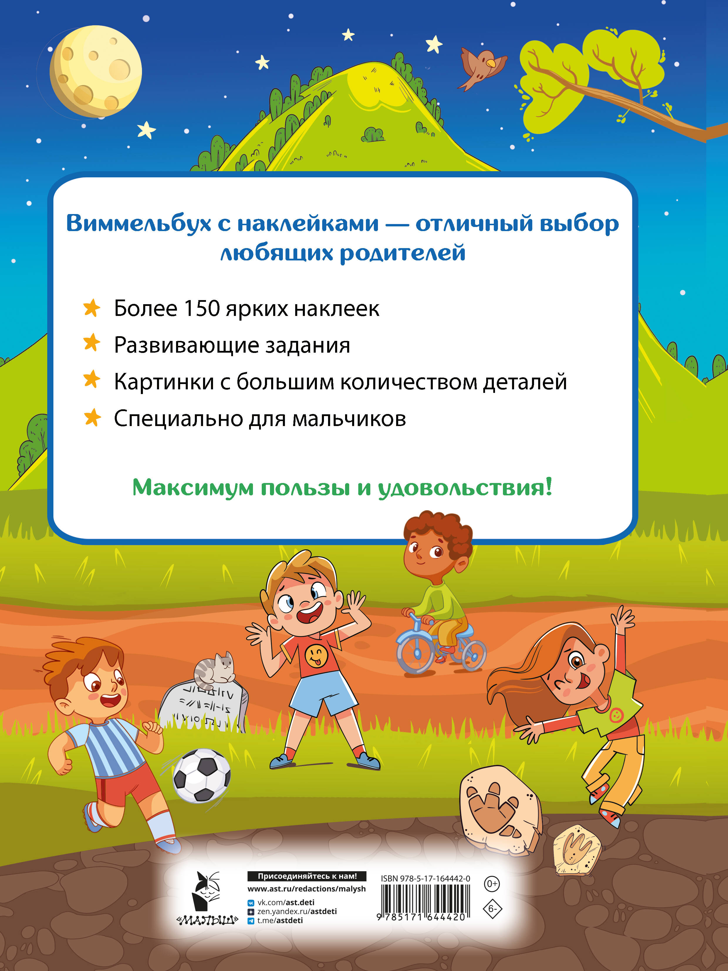 Аннотация: Виммельбух для мальчиков. Найди и наклей