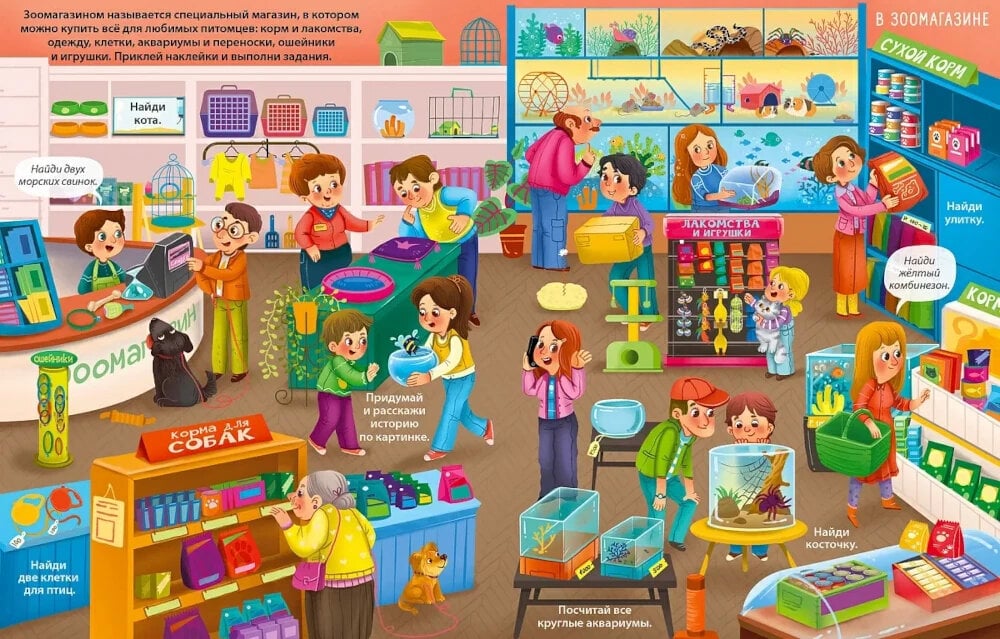 Вы держите в руках не просто книгу, а настоящий виммельбух с наклейками. Благодаря ярким иллюстрациям и занимательным заданиям эта книга надолго увлечёт вашего ребёнка и не даст ему скучать ни минуты.| Издательство | Робинс |