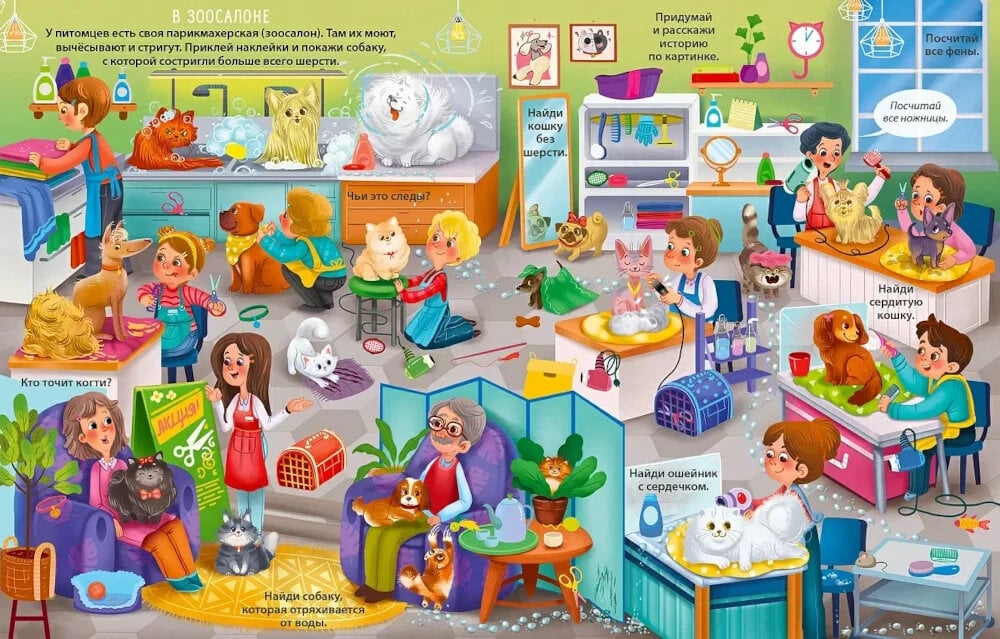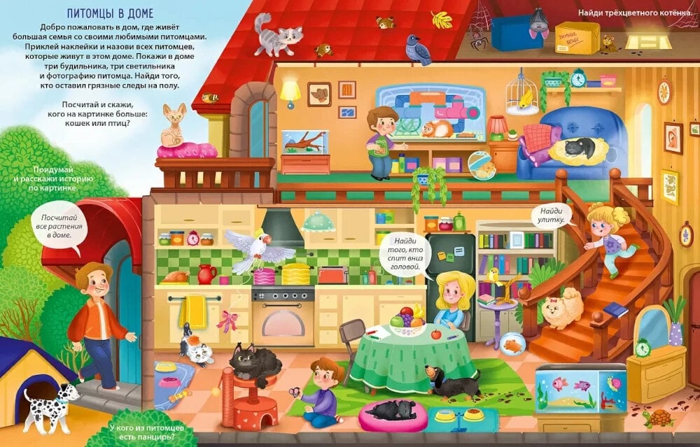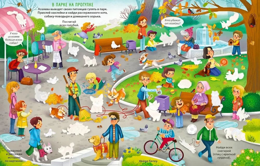 Аннотация: Виммельбух с наклейками. Домашние питомцы (более 280 наклеек)