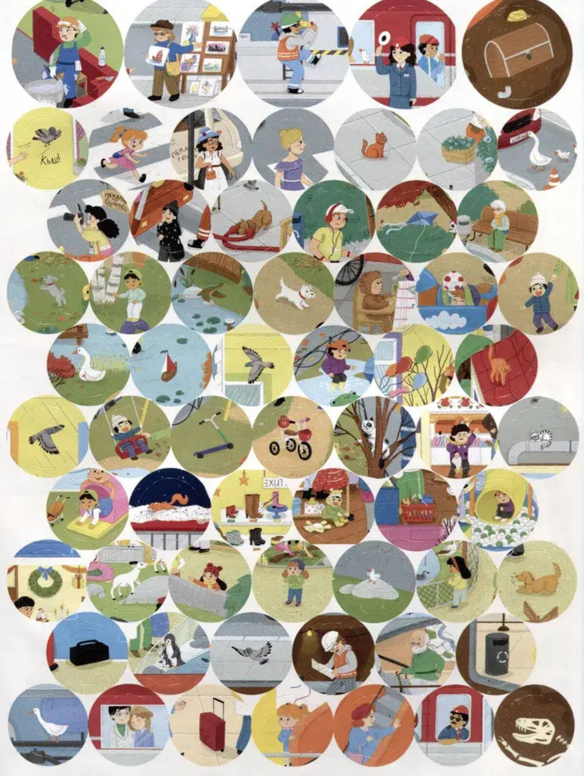 Аннотация: Виммельбух с наклейками. В городе