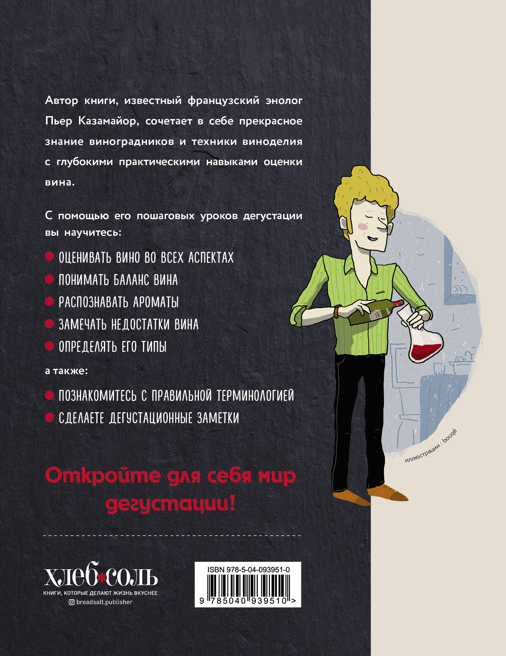 Автор книги, известный французский энолог Пьер Казамайор, сочетает в себе прекрасное знание виноградников и техники виноделия с глубокими практическими навыками оценки вина. С помощью его пошаговых уроков дегустации вы научитесь оценивать вино во всех аспектах: понимать баланс вина, распознавать ароматы, замечать недостатки вина, определять его типы, а также познакомитесь с правильной терминологией.| Издательство | ООО "Издательство "Эксмо" |