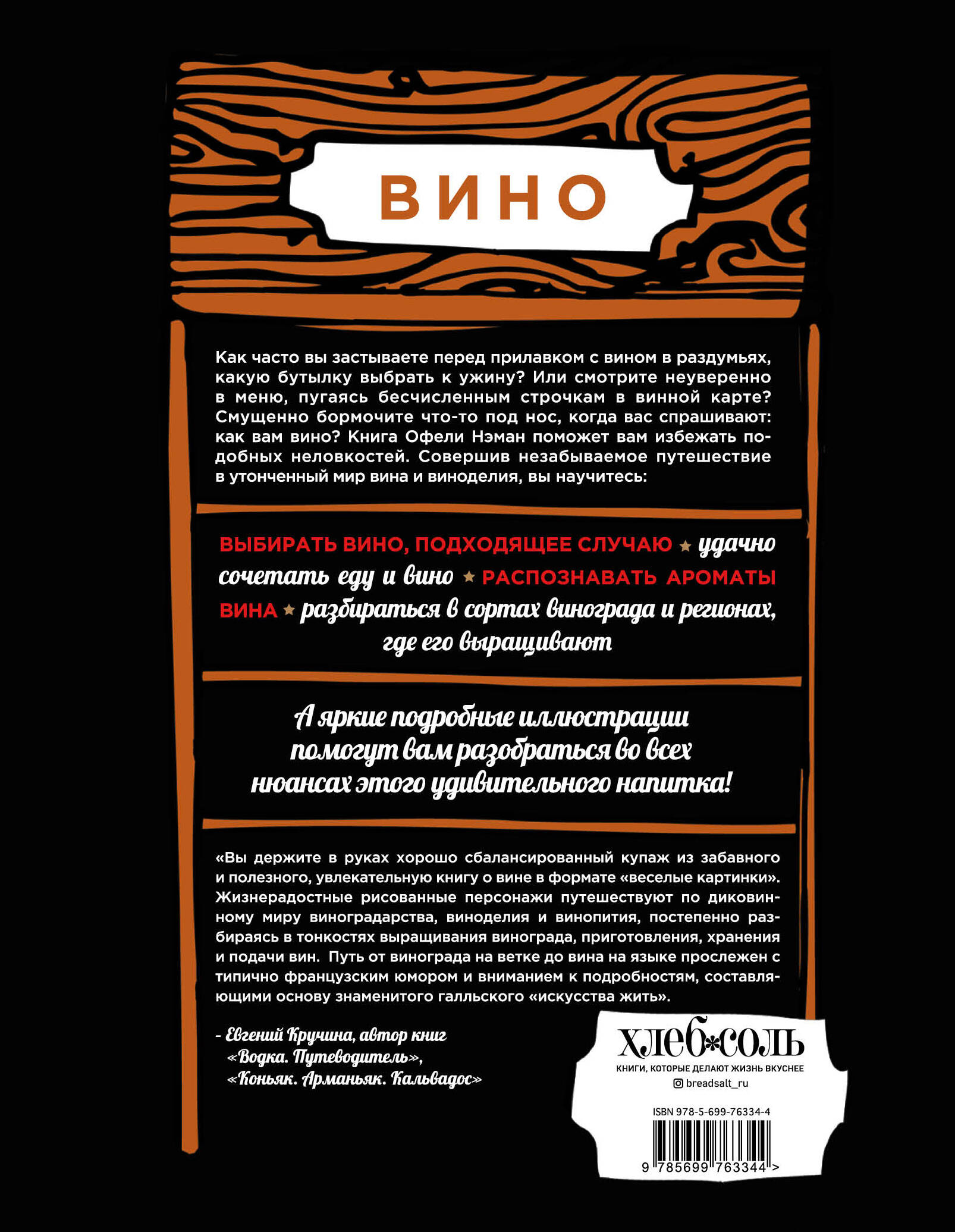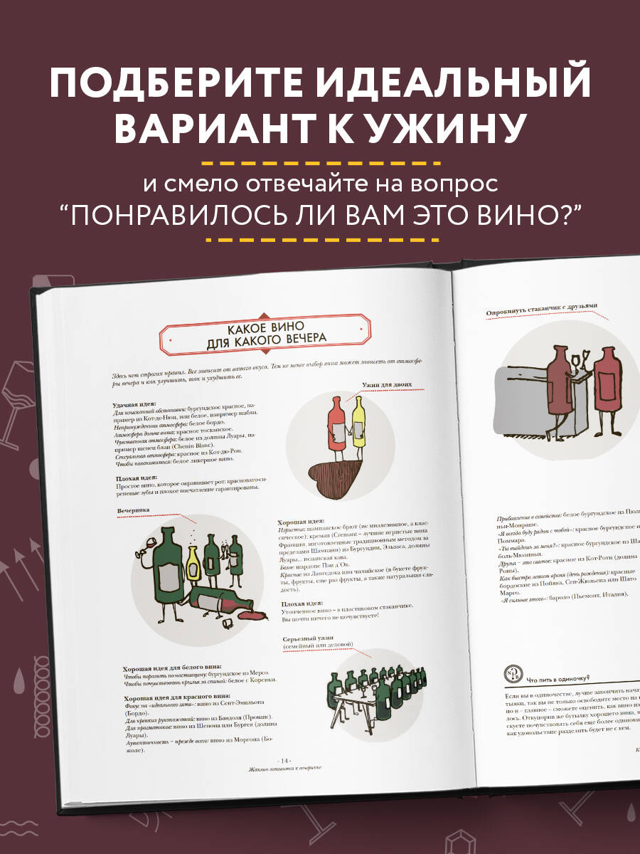 Как часто вы застываете перед прилавком с вином в раздумьях, какую бутылку выбрать к ужину? Или смотрите неуверенно в меню, пугаясь бесчисленным строчкам в винной карте? Смущенно бормочете что-то под нос, когда вас спрашивают, как вам вино? Книга Офели Нэман поможет вам избежать подобных неловкостей. Совершив незабываемое путешествие в утонченный мир вина и виноделия, вы научитесь: - выбирать вино, подходящее случаю; - удачно сочетать еду и вино; - распознавать ароматы вина; - разбираться в сортах винограда и регионах, где его выращивают. А яркие подробные иллюстрации помогут вам разобраться во всех нюансах этого удивительного напитка!| Издательство | ООО "Издательство "Эксмо" |