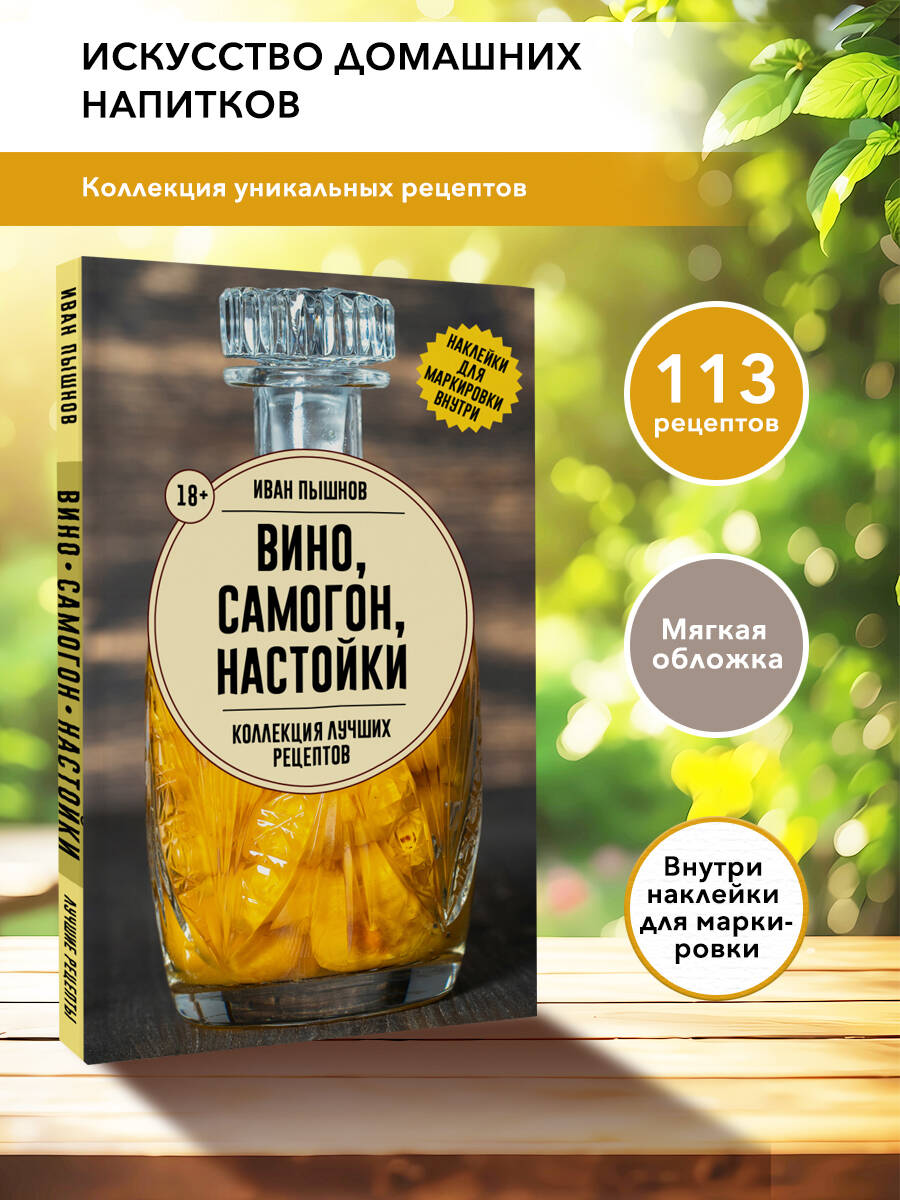 Пробовали вы когда-нибудь розовый самогон? А ликер из лепестков черемухи? А настойку из листьев барбариса? Удивите гостей и разнообразьте ваше застолье необычным алкоголем с кулинарной книгой Ивана Пышнова «Домашняя винокурня», в которой автор делится проверенными рецептами и профессиональными секретами домашней винокурни. Даже если вы совсем новичок в приготовлении напитков, с книгой «Домашняя винокурня» вы легко освоите все премудрости домашнего самогоноварения. В книге о вине вы найдете более ста рецептов по приготовлению домашнего самогона, вина, настоек, наливок, ликера, компотов, морсов и соков. Создайте напитки, сочетающие в себе неповторимый вкус и аромат. В кулинарной книге вы найдете авторские рецепты, проверенные годами, а также разнообразные секреты создания напитков с оригинальным вкусом и ароматом. Побалуйте себя и близких оригинальными рецептами домашнего самогона, вина, настоек, наливок, ликера, компотов, морсов и соков. Книга с красочной обложкой и комплект наклеек для удобной маркировки заготовок делают эту книгу в мягком переплете отличным подарком для хозяев и хозяек, любящих гастрономические эксперименты.| Издательство | Издательство "АСТ" |