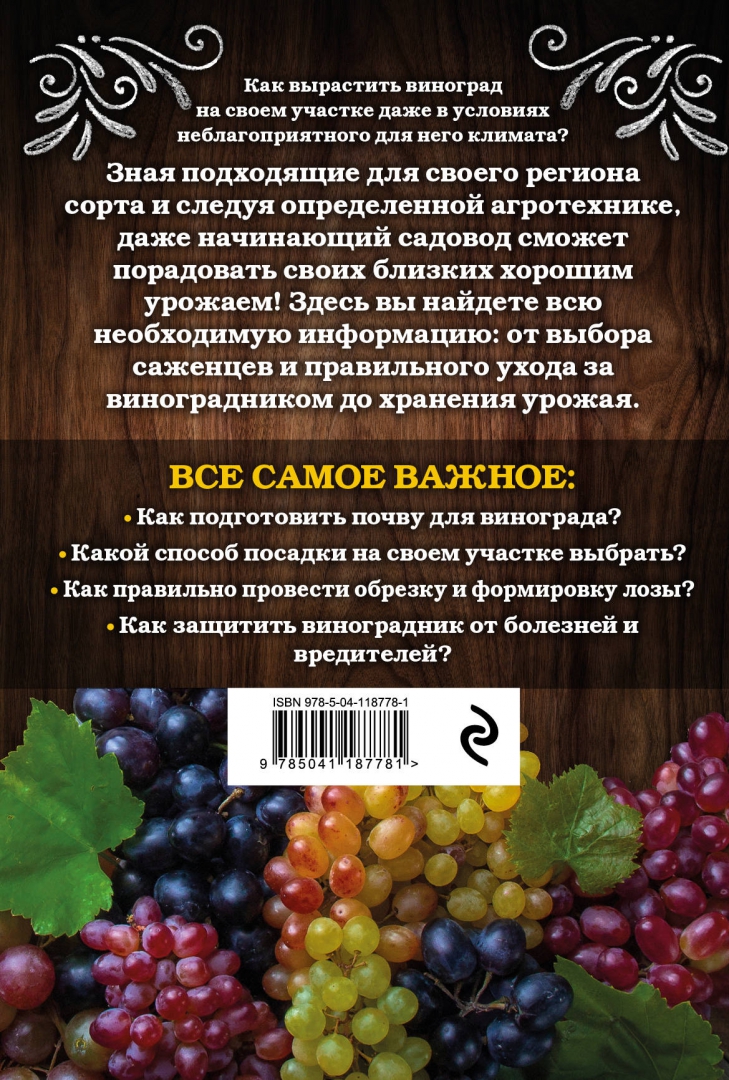 Зная особенности выращивания винограда и сортов, подходящих для вашей климатической зоны, разбить на своем участке виноградник и получить хороший урожай будет несложно. В этой книге вы найдете основные правила и принципы выращивания винограда в Средней полосе, научитесь правильно подбирать урожайные сорта, своевременно проводить обрезку и формировку, ухаживать за лозой, защищать виноградник от болезней и вредителей.