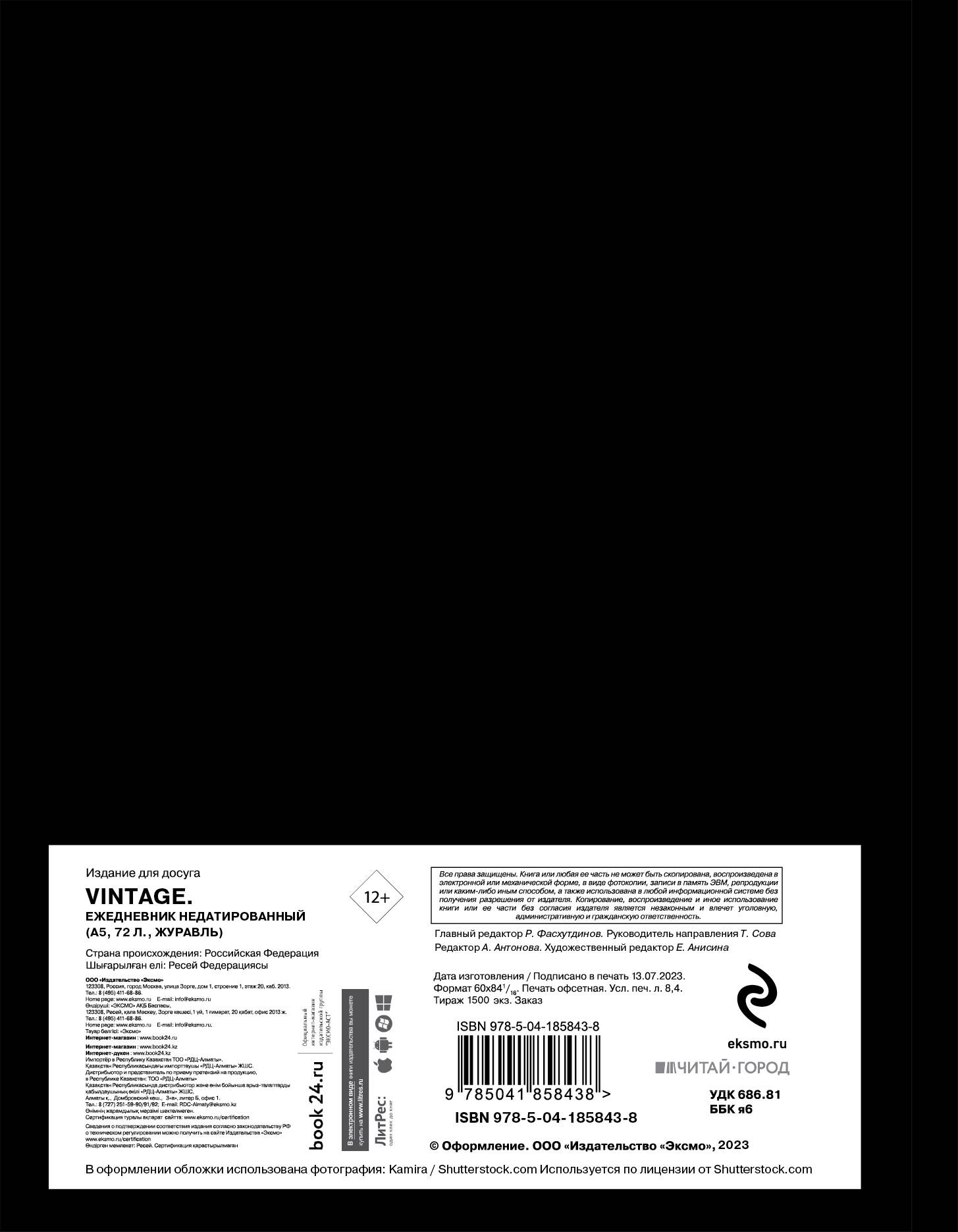 Аннотация: Vintage. Ежедневник недатированный (А5, 72 л., журавль)