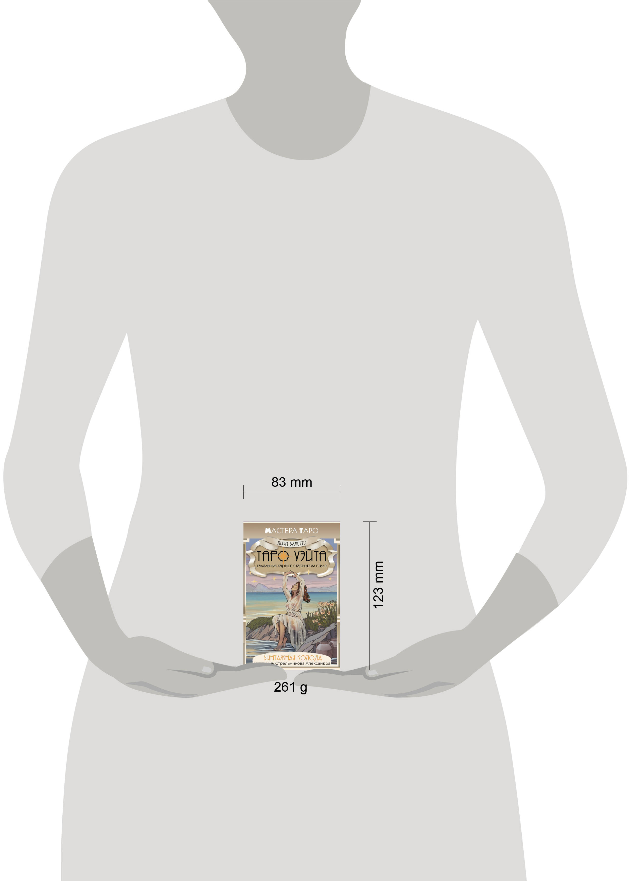 Винтажная колода вернет вас к истокам Таро. Особенность колоды в том, что персонажи, впервые появившиеся на одной карте, продолжают свое повествование на другой, создавая взаимосвязанную историю, что раскрывает новые грани образов и символов Таро и делает расклад более понятным. Эта колода - больше, чем просто инструмент для гадания. Она - окно в мир древних знаний. "Винтажное Таро" станет прекрасным подарком для ценителей искусства, коллекционеров и любителей карт. Комплект состоит 78 карт и небольшой брошюры под размер карт. Колода также издается в формате большой коробки под названием "Таро Уэйта. Большая винтажная колода".