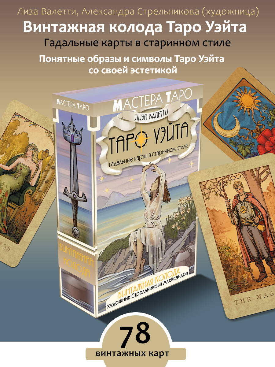 Аннотация: Винтажная колода Таро Уэйта. Гадальные карты в старинном стиле