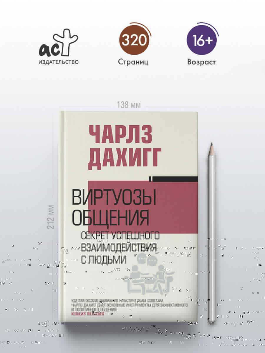 От автора бестселлера «Сила привычки. Почему мы живем и работаем именно так, а не иначе». Увлекательное исследование принципов эффективной коммуникации. Содержит практические советы как стать виртуозом общения. - Из этой книги вы узнаете: - Как услышать собеседника и быть услышанным. - Как расположить к себе человека и заставить поделиться своими мыслями. - Как наладить любую беседу. -Как понять, почему общение не задалось, и как это исправить.| Издательство | Издательство "АСТ" |