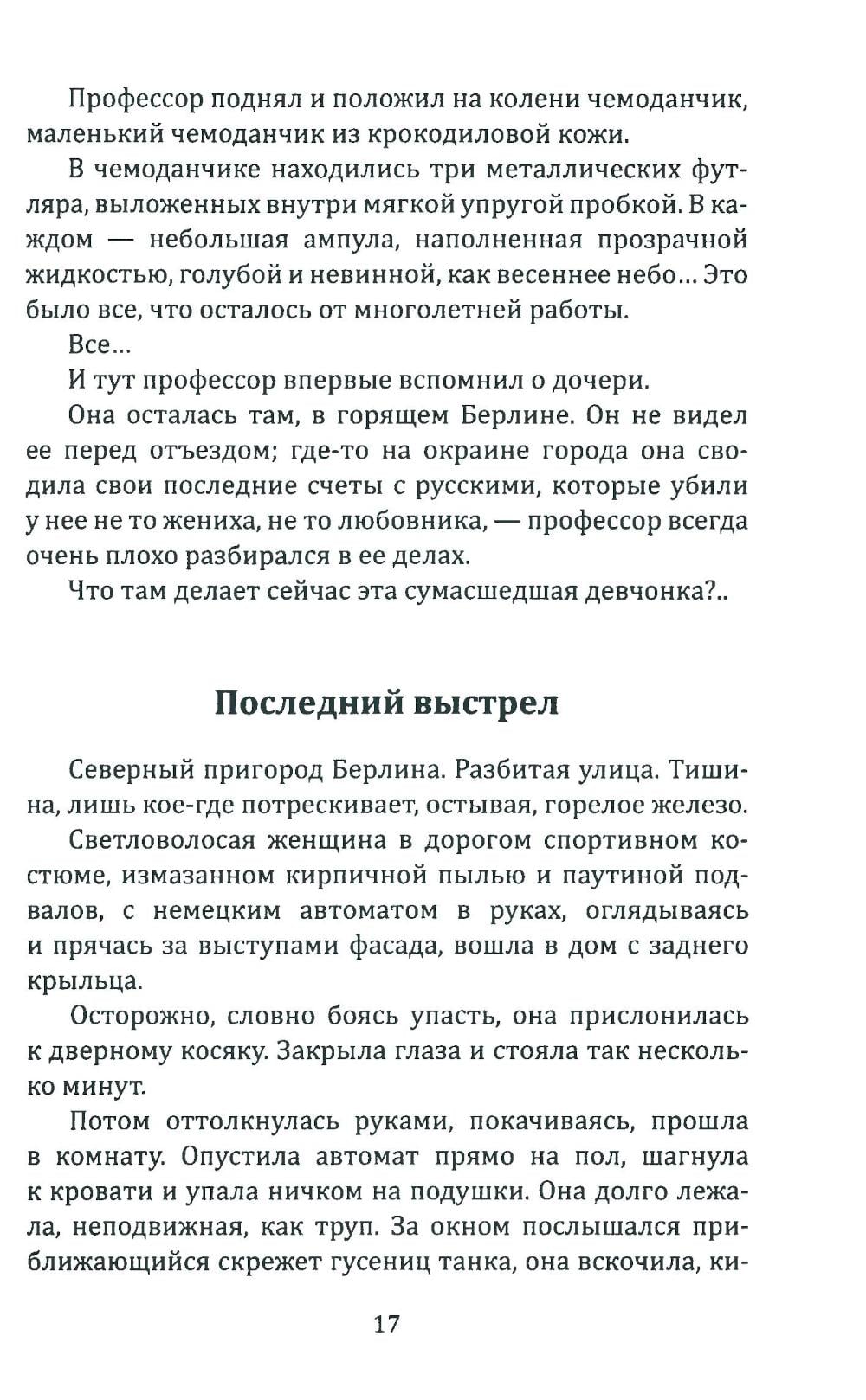 Михаил Петрович Михеев (1911-1993) - замечательный советский поэт и признанный мастер остросюжетной литературы, корифей советского детектива, шпионского романа и фантастики. В центре внимания писателя - борьба советских контрразведчиков в поверженной гитлеровской Германии с нацистским подпольем. Немецкие ученые создали биологическое оружие - препарат, который превращает людей в послушных животных. После разгрома третьего рейха они нашли себе новых хозяев… Сумеют ли чекисты разорвать порочный круг и вывести на чистую воду злодеев? Перед читателями отрывается картина послевоенной Европы. Шпионы, коммерсанты, фанатики… Книга предназначена для всех ценителей настоящего шпионского романа.| Издательство | Родина |
