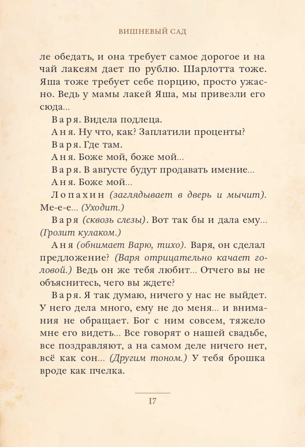 Классическая пьеса Антона Павловича Чехова, которую сам автор охарактеризовал как комедию, раскрывает тонкие стороны души человека. За желанием спасти вишневый сад кроются стремления уберечь мечты и воспоминания из детства. Главные герои переживают внутренний кризис, они не готовы расставаться с прошлым и смотреть в лицо настоящему. Светлые иллюстрации Ольги Голубейко изящно затрагивают эти чувства, оставляя приятное послевкусие.| Издательство | ИД Мещерякова |