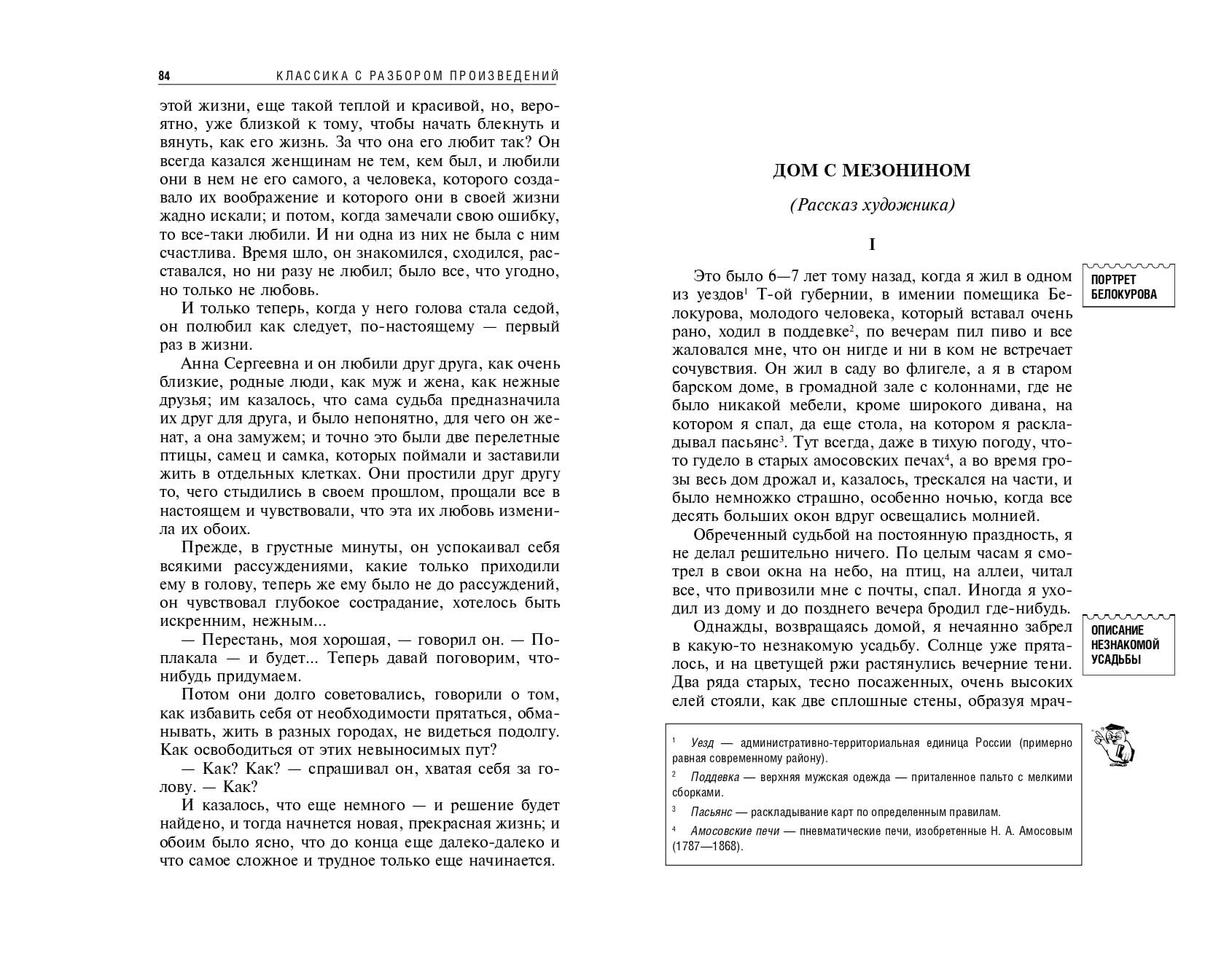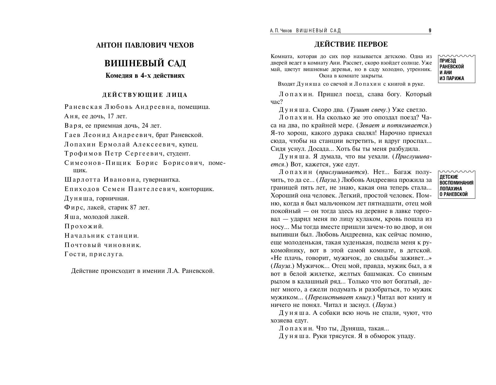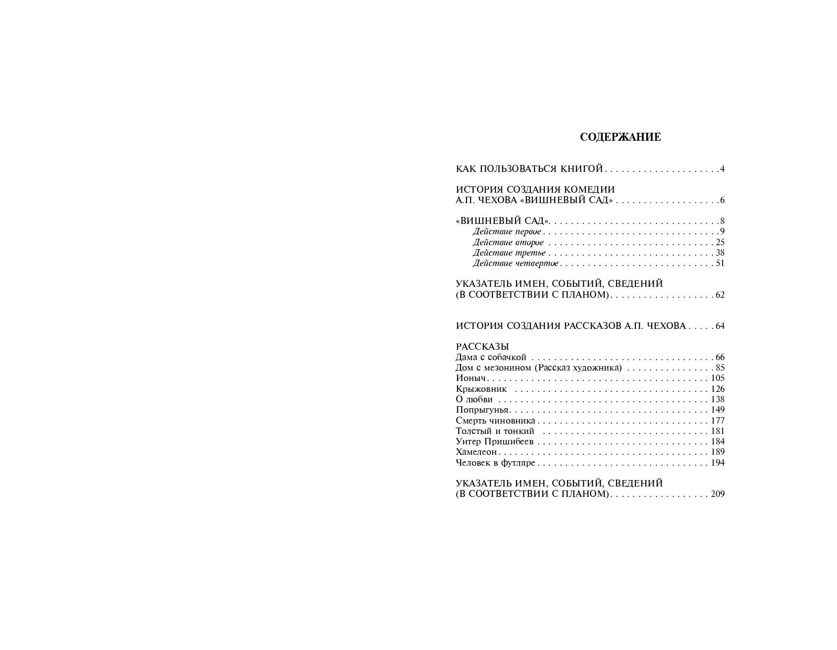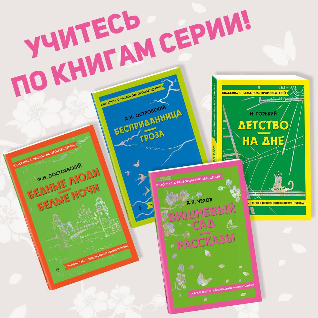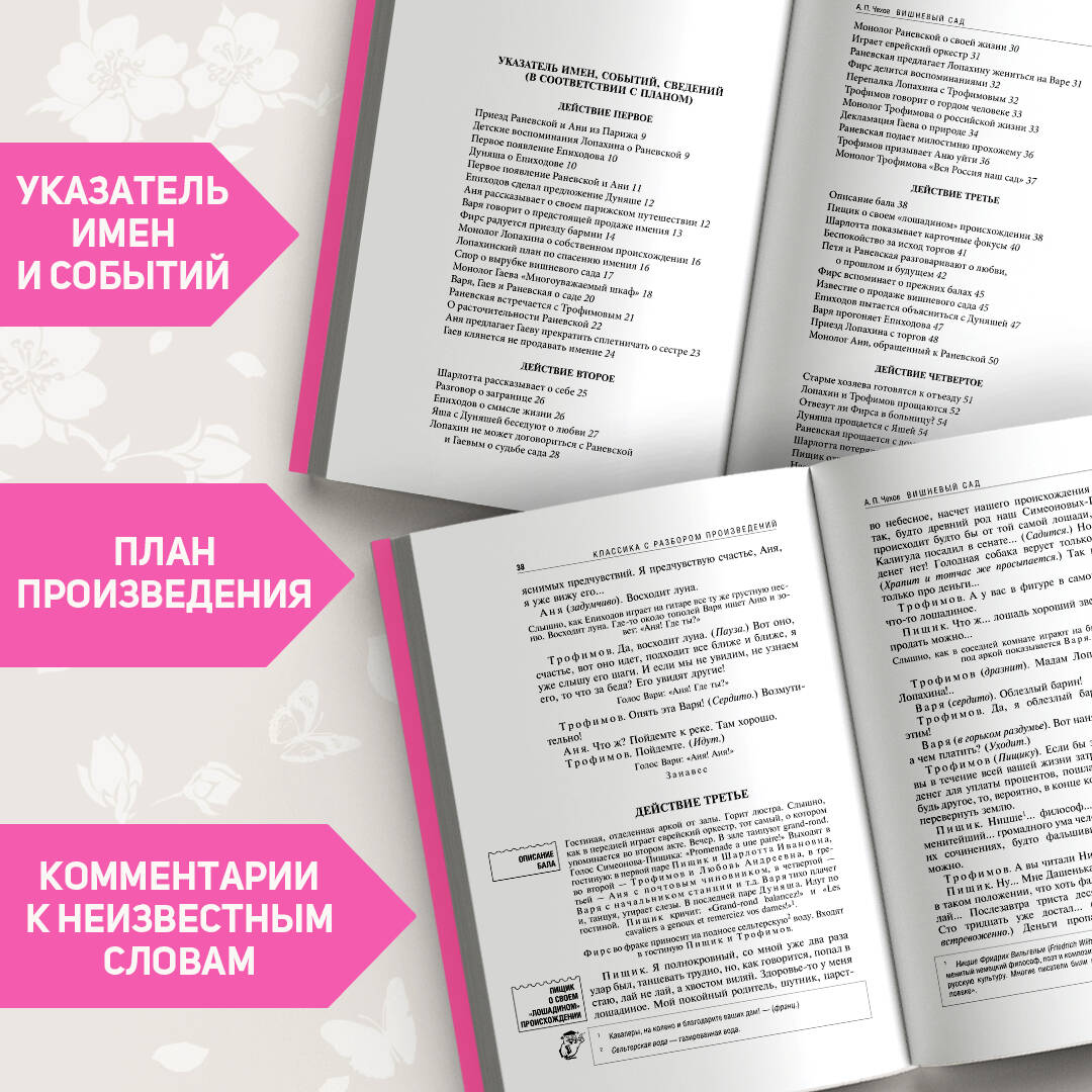 А. П. Чехов - мастер драматургии и прозы, из-под пера которого вышло множество легендарных произведений русской литературы. Пьеса «Вишневый сад», рассказы «Дама с собачкой», «Дом с мезонином», «Ионыч» и многие другие до сих пор пользуются большой популярностью как среди школьников, так и среди представителей старших поколений. Новое издание этих произведений в невероятном оформлении с голографической фольгой на обложке станет не только незаменимым помощником в подготовке к ЕГЭ, ОГЭ, урокам литературы, но и приятным подарком для всех ценителей классической литературы. В нем вы найдете уникальные справочные материалы: заметки на полях для быстрого поиска нужного фрагмента, развернутые комментарии, где объясняются устаревшие слова и непонятные факты, историю создания произведений, указатель имен и событий. Все это поможет не только быстро и легко подготовиться к экзаменам, но и узнать новые факты, которые можно было упустить на уроке. В пьесе «Вишневый сад», ставшей самым знаменитым произведением мировой драматургии ХХ века, рассказывается о некогда богатом дворянском семействе, которое, приблизившись к финансовой катастрофе, вынуждено продать родовое поместье с роскошным садом. Пьеса показывает, как старое дворянство вступает в контраст с новым, с их представлением о жизни и прогрессивными идеями. Также в книге приводятся следующие рассказы: «Человек в футляре», «Хамелеон», «Унтер Пришибеев», «Толстый и тонкий», «Смерть чиновника», «Попрыгунья», «О любви», «Крыжовник», «Ионыч», «Дом с мезонином», «Дама с собачкой». Собрание всех книг серии «Классика с разбором произведений» в стильных обложках станет невероятным украшением домашней библиотеки. Ее яркое оформление можно будет заслуженно назвать жемчужиной вашей коллекции.