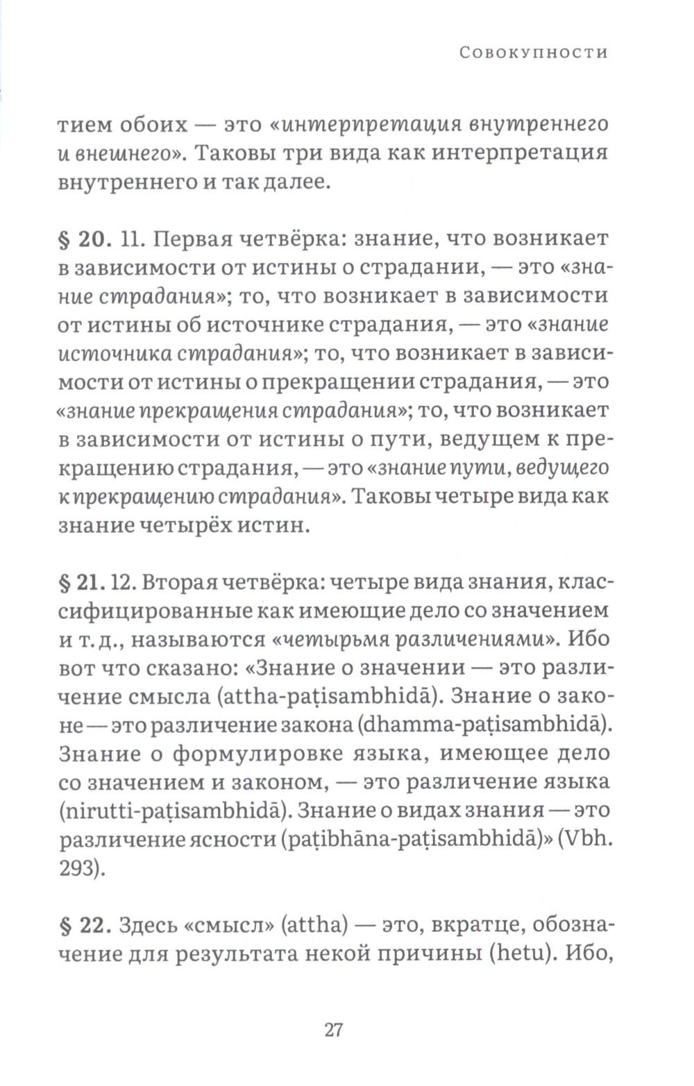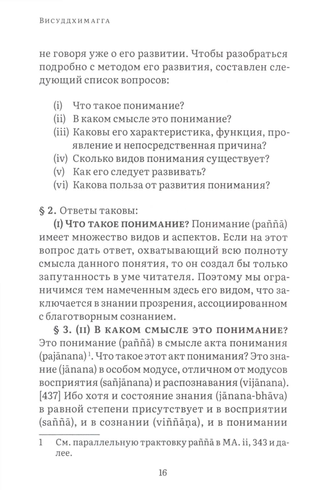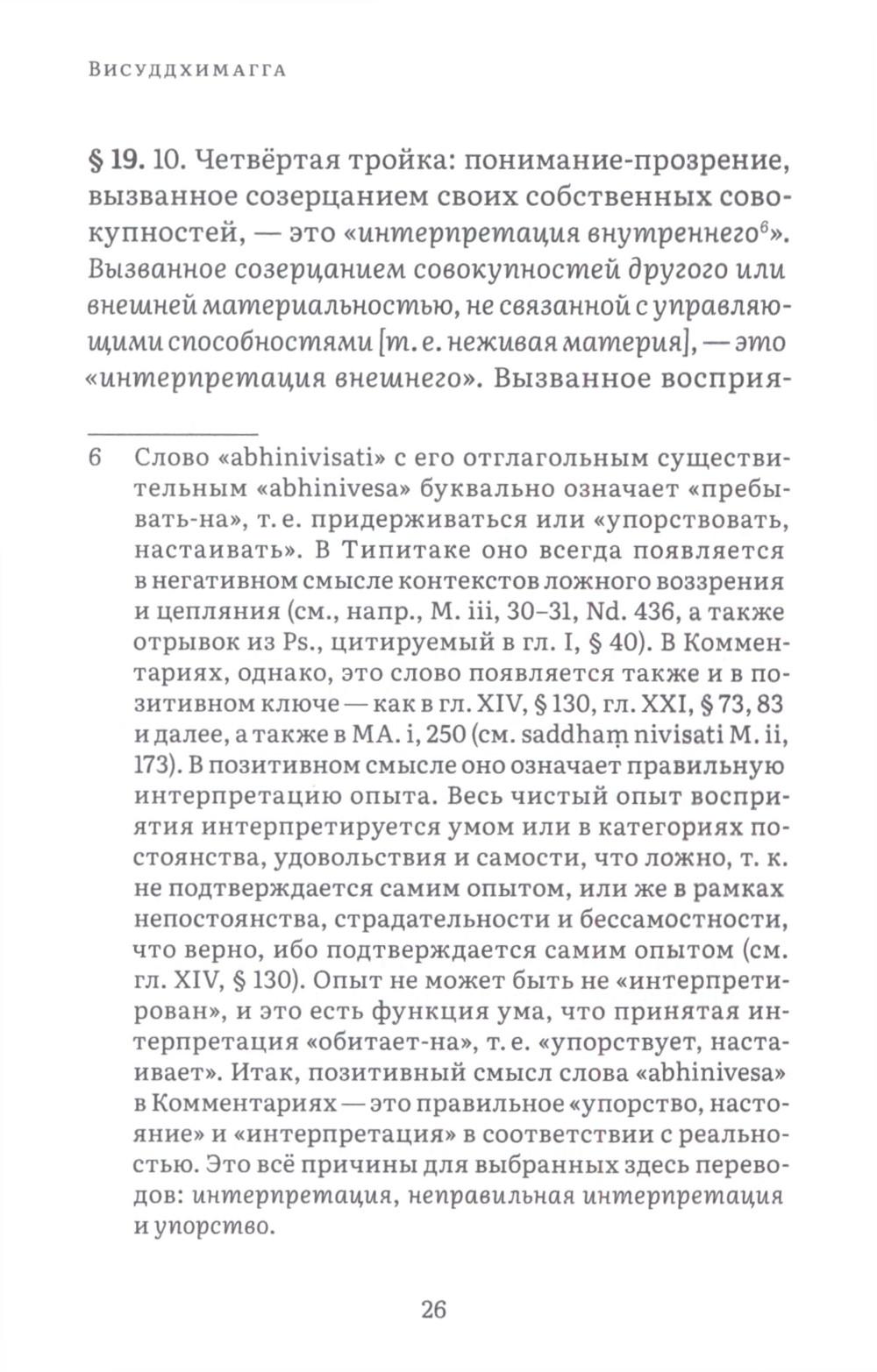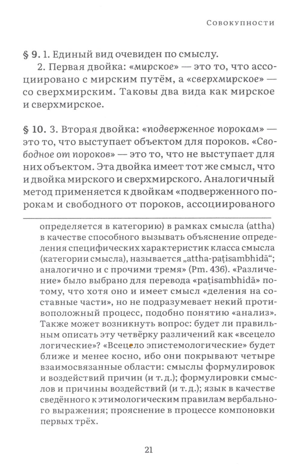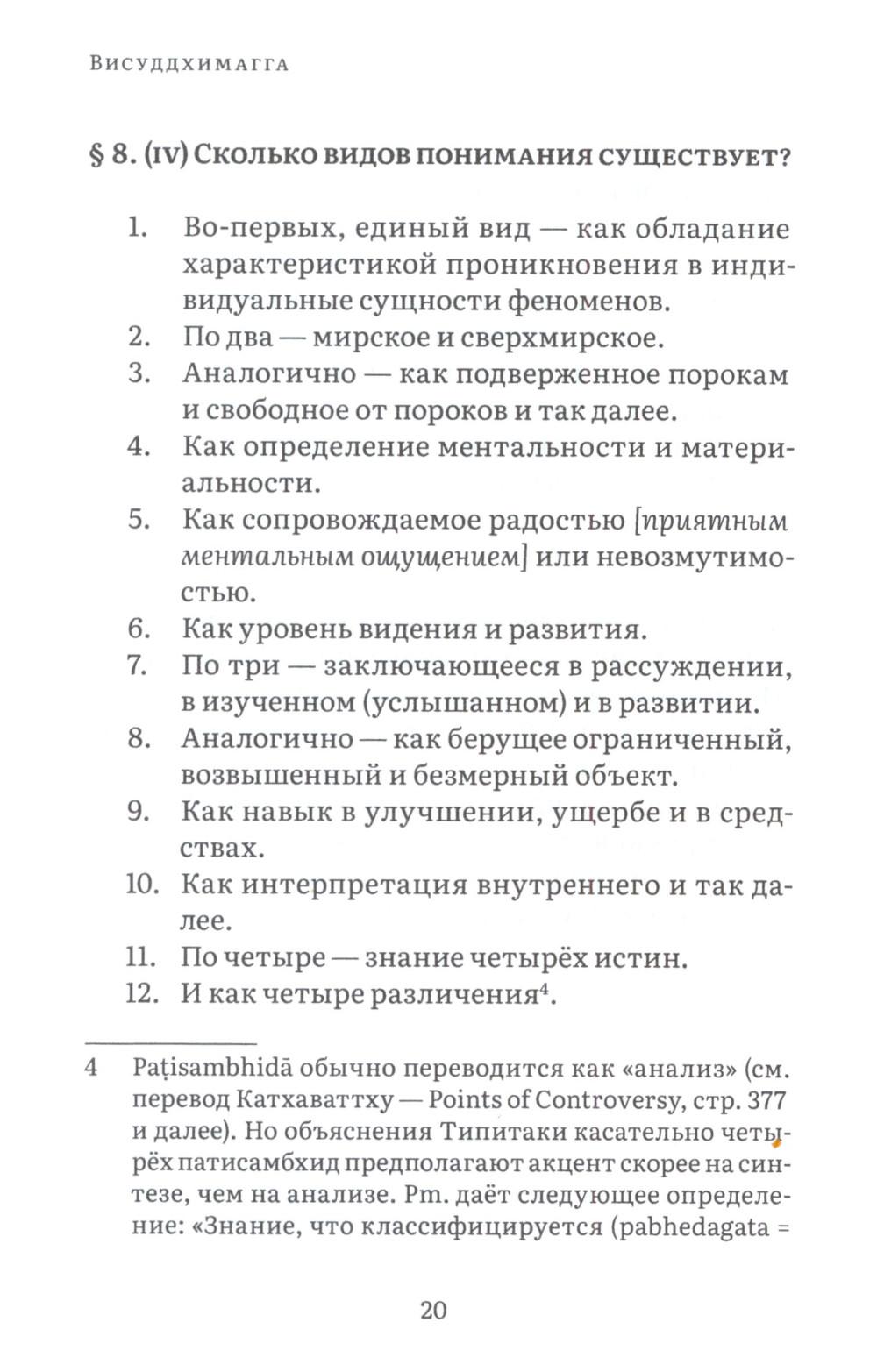 Висуддхимагга - это «великий трактат» буддизма Тхеравады, энциклопедическое руководство по буддийской доктрине и медитации, написанное в пятом веке знаменитым буддийским комментатором Бхадантачарией Буддхагхосой. При написании этой книги автор поставил своей целью систематизировать и объединить различные учения Будды, встречающиеся во всем Палийском каноне, в ясный и всеобъемлющий путь, ведущий к конечной буддийской цели - Ниббане, состоянию полного очищения от аффектов и прекращения страданий. Трактат состоит из трех больших разделов. Первый посвящен очень подробному обсуждению различных аспектов буддийской нравственности, важнейшей составной части восьмеричного Пути. Во второй части излагаются теоретические и практические вопросы, касающиеся природы сосредоточения (самадхи), его разновидностей, путей достижения и приносимой им пользы. Автор детально обсуждает различные виды медитативных опор, с помощью которых достигается погружение в тонкие и очищенные от пяти помех состояния сознания (джханы), а также раскрывает природу различных уровней медитативного погружения. Третий раздел посвящен обсуждению развития понимания, мудрости, способной постигнуть вещи такими, какими они являются в действительности, что ведет к окончательному освобождению от пут самсары. Трактат издается в двух томах. В первом томе представлены первые два раздела, во втором - третий. Все таблицы, упоминаемые в книге, будут представлены во втором томе.| Издательство | Изд. Ганга |