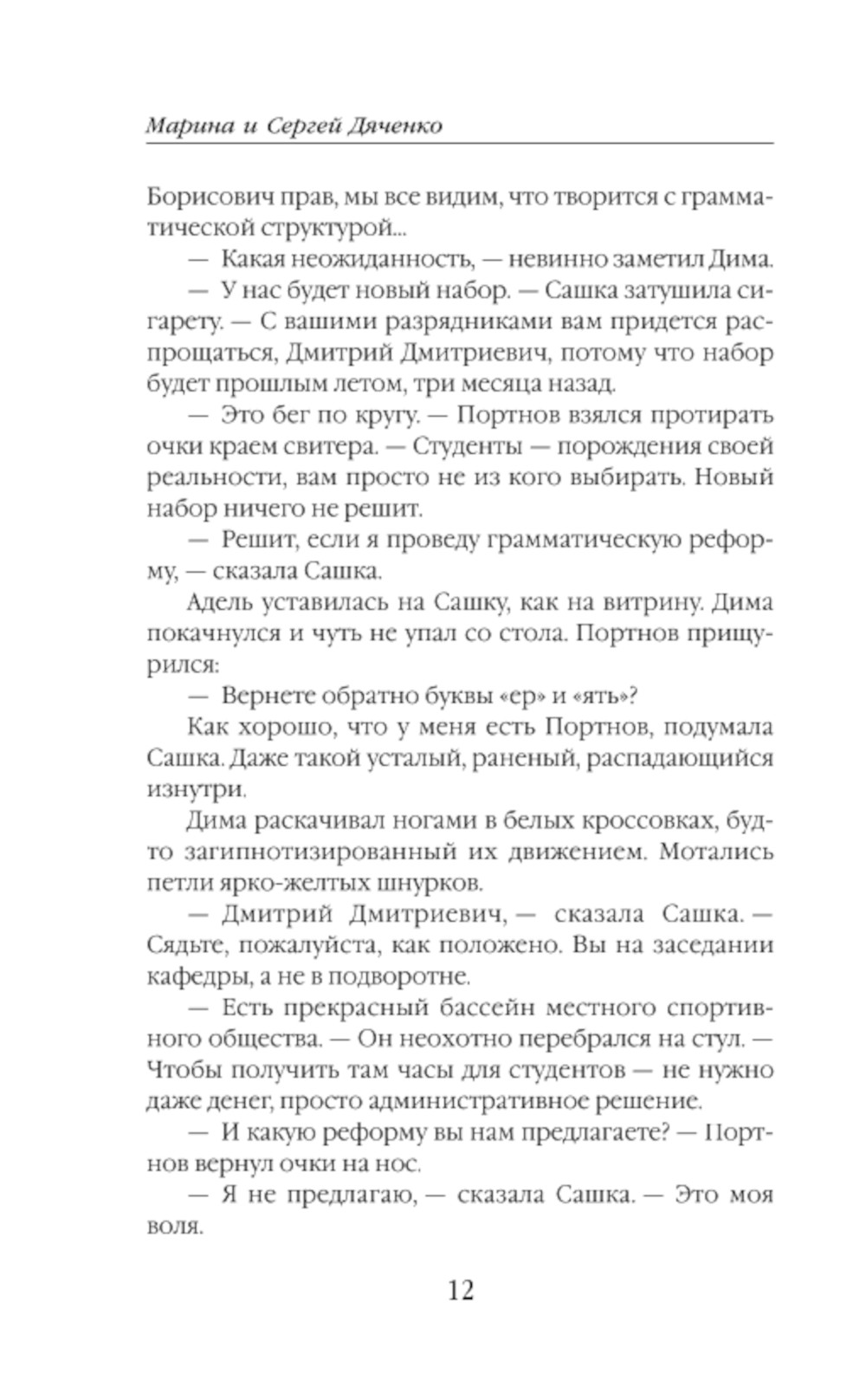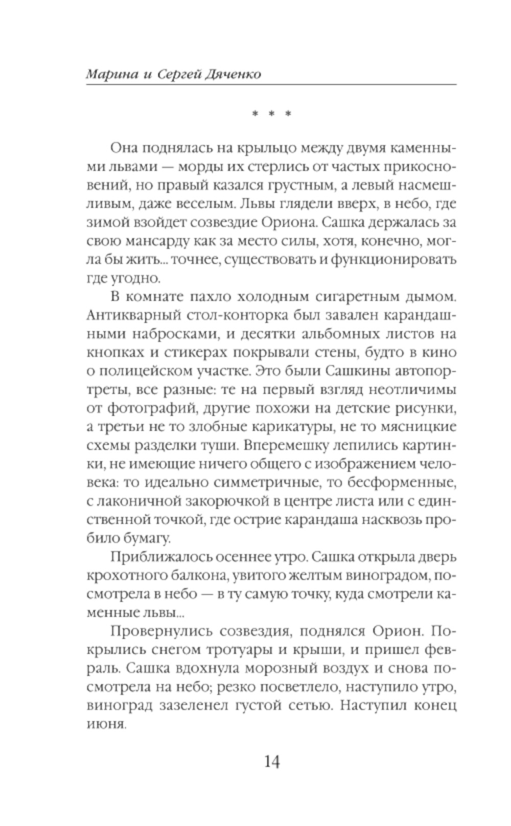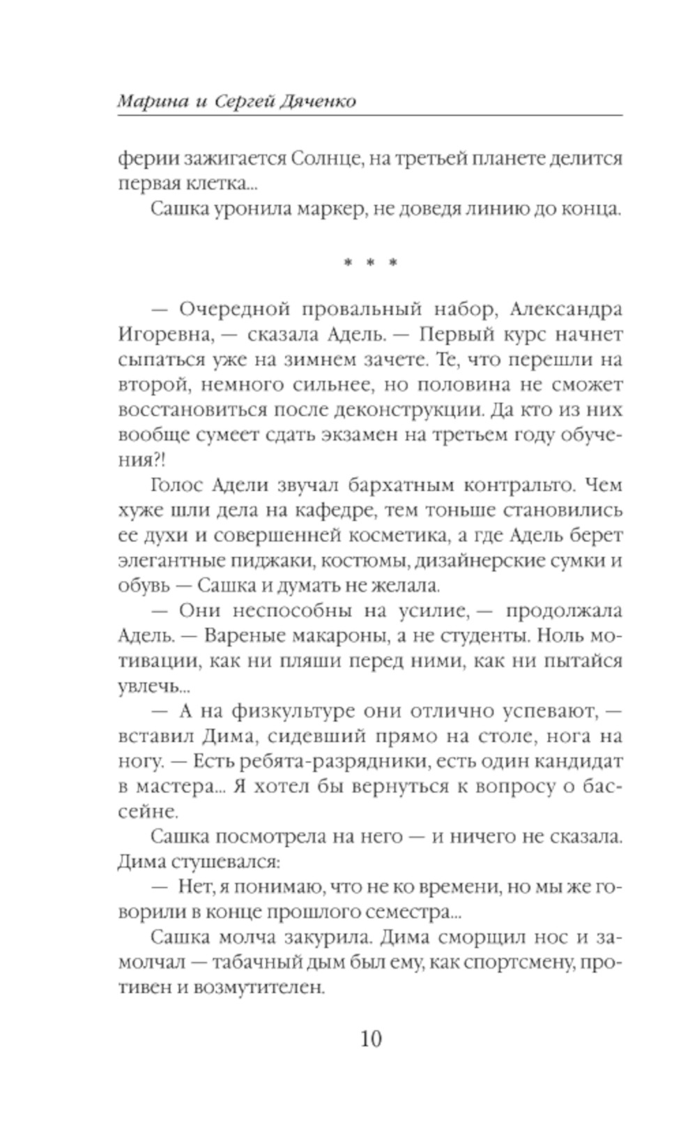 Завершающий роман трилогии «Vita Nostra» - история любви и надежды. Первая часть романа, «Vita Nostra», переведена на 6 языков, авторы стали лауреатами более 100 премий, отечественных и международных. Этот роман по-прежнему остается одной из самых «читабельных» книг на русском языке. Супруги Дяченко - писатели-соавторы, сценаристы, лауреаты более ста литературных премий. Последние десять лет жили в США, писали на русском языке в жанрах современной научной фантастики, фэнтези и сказки. Их книги переведены и издаются в Америке, Великобритании, Германии, Франции, Италии, Испании, Бразилии, Китае и других странах. После смерти в 2022 году Сергея Дяченко, своего мужа, друга и соавтора, Марина продолжает их общее дело, как и обещала Сергею. Сашка Самохина, когда-то испуганная первокурсница, становится всемогущим ректором Института специальных технологий. Когда-то она поражалась жестокости преподавателей - теперь сама не знает пощады. Когда-то она не верила, что будет убийцей реальности - теперь миру придет конец, если Сашка не соберет вовремя осколки, фрагменты своей прежней личности. Но все жертвы не напрасны.| Издательство | Эксмо |