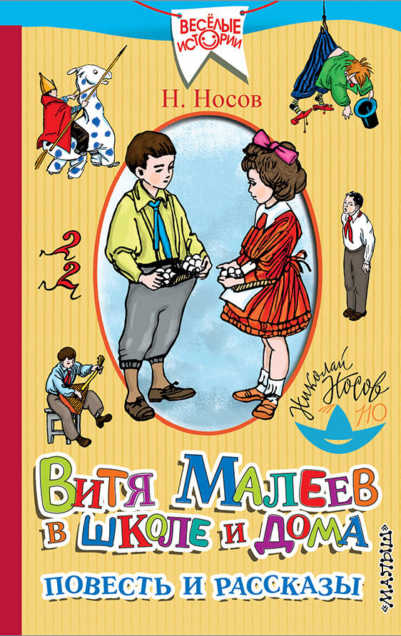 В книгу классика детской литературы Н.Н. Носова «Витя Малеев в школе и дома. Повесть и рассказы» вошла повесть о Вите Малееве и рассказы. Герои Носова весёлые и непосредственные. Они умеют дружить и справляться со своими недостатками. В 1952 году Н.Н. Носов за повесть «Витя Малеев в школе и дома» получил Сталинскую премию. В 1954 году по повести был снят фильм «Два друга». Иллюстрации в книге народного художника СССР В.Н. Горяева.