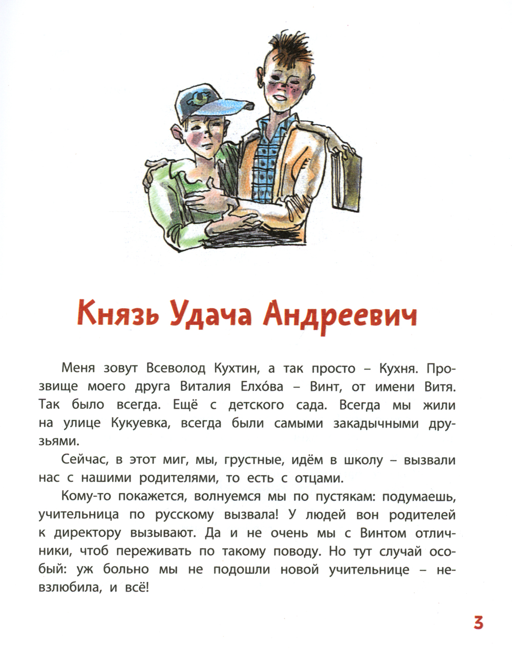 Двух закадычных друзей - Витьку Елхова и Севку Кухтина - все вокруг называют не иначе как Винт и Кухня. Обыкновенные мальчишки, они мало отличаются от сотен своих сверстников. Однако есть у этой неразлучной парочки особый талант - «влипать» в разные истории. В книгу вошли две повести о неугомонных мальчишках - «Князь Удача Андреевич» и «Магия чёрная и белая». Веселую и увлекательную книгу украшают озорные красочные иллюстрации известного художника Михаила Петрова. Читайте всей семьёй!