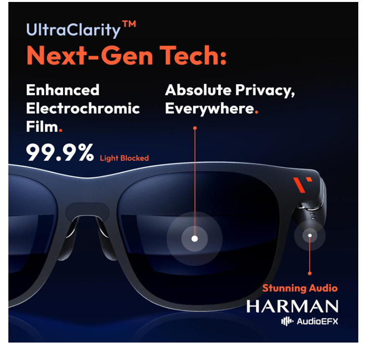 VITURE Pro XR это стильные и лёгкие очки дополненной реальности, предназначенные для создания персонального виртуального экрана размером до 135 дюймов. Они оснащены дисплеем Sony Micro-OLED с разрешением 1920×1080 пикселей на каждый глаз и частотой обновления 120 Гц, обеспечивая чёткое и плавное изображение. Благодаря электрохромной плёнке, очки позволяют регулировать степень затемнения линз, что обеспечивает комфортное использование при различных условиях освещения.
