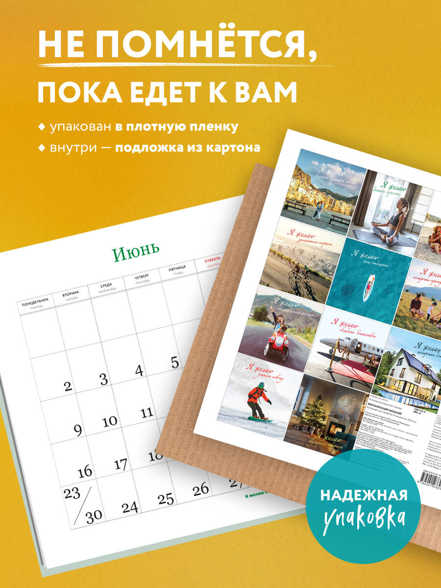 О серии: Наши настенные календари отличаются высоким качеством исполнения! Тщательно подобранные иллюстрации, напечатанные на глянцевой бумаге высочайшего качества, станут настоящим украшением дома, а в календарной сетке найдется место для ваших планов: большие клетки позволят делать записи и организовать свой год! В календаре также отмечены все государственные праздники. В серии настенных календарей издательства «ЭКСМО» каждый найдет тему по вкусу: великие художники, великолепные подборки с самыми знаменитыми произведениями искусства, легендарные кинематографические саги и игры, главные книжные авторы и бестселлеры, фотографии и иллюстрации любимых животных и многое-многое другое! О календаре: В календаре подобраны красочные фотографии для заряда мотивации и визуализации желаний: вы сможете поставить перед собой невероятные цели и достигнуть их в сопровождении красочных фотографий и аффирмаций. Каждый новый месяц пробудит самые искренние и высокие стремления. Благодаря большому формату и высокому качеству изображений этот календарь может стать отличным дополнением интерьера. В нем также отмечены выходные дни, а просторная сетка позволяет удобно планировать время и записывать важные события. А еще включен дополнительный разворот с первыми четырьмя месяцами 2026 года! Для кого: Вдохновляющие фотографии с мотивационными аффирмациями, напечатанные на высококачественной бумаге, вдохновят тех, кто стремится сделать свою жизнь лучше и комфортнее. Технические параметры: - Тип календаря - настенный перекидной. - Год - 2025. - Календарная сетка - с разбивкой по месяцам. - Вид скрепления - скрепка. - Ширина - 30 см. - Высота - 30 см. - Внутренний блок - мелованная бумага 150 г/м2. - Подложка - плотный гофрокартон для поддержания формы. - Индивидуальная упаковка в плотный целлофановый пакет.| Издательство | ООО "Издательство "Эксмо" |