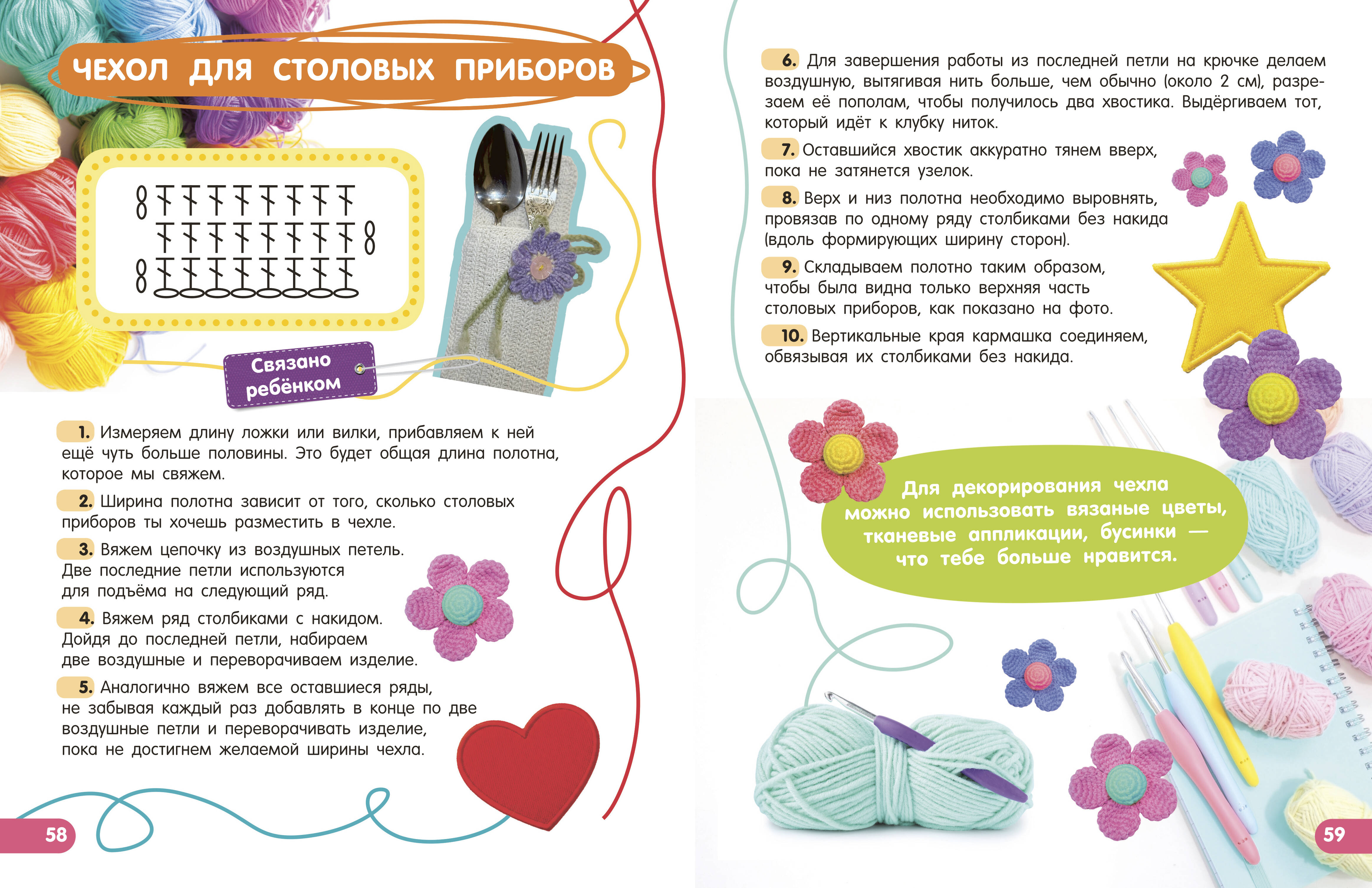 «Вязание крючком. Смотри и повторяй» - новая книга серии-бестселлера «Большой самоучитель для маленьких». Простые инструкции и наглядные пошаговые описания в картинках помогут ребёнку без труда выбрать крючок нужного размера и подходящие нитки, научиться делать петли и ряды, разобраться в схемах и, наконец, создать свои первые вязаные шедевры: шарф, сумочку, чехол для телефона и многое другое. Книга большого формата, имеет твердый переплёт, красиво оформлена - прекрасно подойдёт в качестве подарка на день рождения, 8 марта, Новый год, 1 сентября для дочери, внучки, племянницы, подруги, одноклассницы. Автор - педагог с многолетним стажем - не только обладает обширными теоретическими знаниями, но и умеет легко и просто объяснять ребёнку сложные вещи. 10-12 лет - идеальный возраст, чтобы научиться вязать! Вязание улучшает концентрацию внимания, развивает мелкую моторику, формирует новые нейронные связи головного мозга, снижает уровень стресса, дарит радость творчества, является ярким способом самовыражения. У ребёнка появляется возможность создать уникальные вещи и, возможно, в будущем превратить полезное хобби в источник дохода.| Издательство | Издательство "АСТ" |