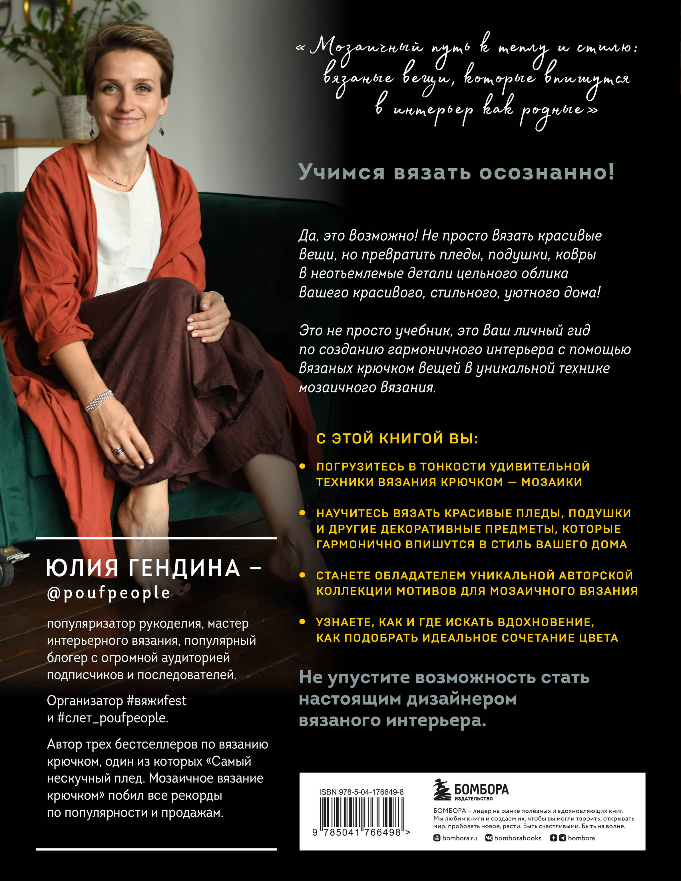 Да, это возможно! Не просто вязать красивые вещи, которые не находят себе применения в жизни, а просто копятся на полках, но превратить пледы, подушки, ковры в неотъемлемые детали цельного облика вашего красивого, стильного, уютного дома! В новой книге популяризатор рукоделия и автор бестселлеров по вязанию Юлия Гендина расскажет не только о технологии мозаичного вязания крючком, но и о том, как можно применить это умение для создания красивых и стильных предметов декора. Вы узнаете о современных тенденциях в дизайне интерьера, о тонкостях подбора цветов и узоров, о том, какие элементы декора могут стать центром внимания в вашей комнате. Научитесь создавать гармоничный образ, который будет передавать вашу индивидуальность, получите множество примеров, которые помогут вам преобразить ваш дом в уютное гнездышко, от которого невозможно оторвать взгляд. А авторская коллекция узоров будет питать ваше вдохновение многие годы! Вы станете настоящим экспертом в дизайне вязаного интерьера!| Издательство | ООО "Издательство "Эксмо" |