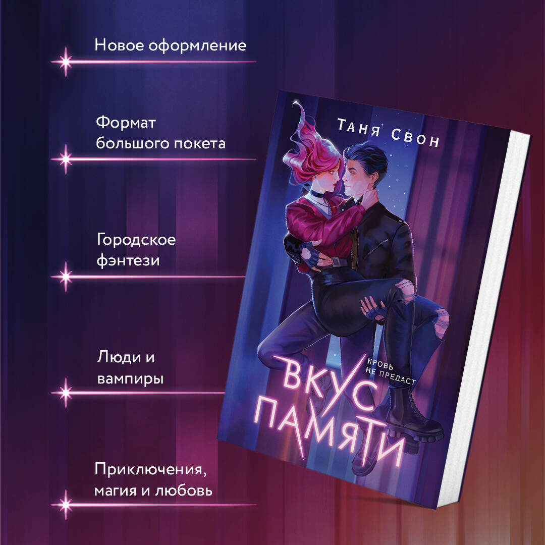 Уже несколько веков люди и вампиры живут без войн. Но не все видят счастье в равенстве. Грядет переворот, который готовился не одно десятилетие. Сандра переезжает в столицу, чтобы начать жизнь с чистого листа. Случайность или судьба вкладывает в руки девушки ритуальный клинок, что давно считался пропавшим? Теперь на Сандру открыта охота. Ей придется научиться выживать, и Нокс готов в этом помочь. Но можно ли верить едва знакомому парню из городской банды Химер? Да, если у тебя нет выбора. «Вкус памяти», первый роман вампирской дилогии Тани Свон, - теперь в удобном формате покета! Новая обложка от Invi! Young Adult, городское фэнтези, приключения, магия, любовь, люди и вампиры. Таня Свон - разносторонний автор, который уже завоевал любовь читателей. Новый мир кажется сбалансированным, но грядет переворот, который готовился не одно десятилетие. У тебя нет выбора, ты должна быть сильной.| Издательство | ООО "Издательство "Эксмо" |