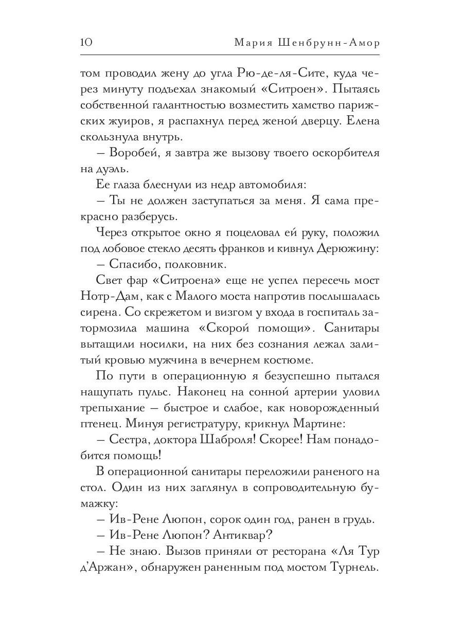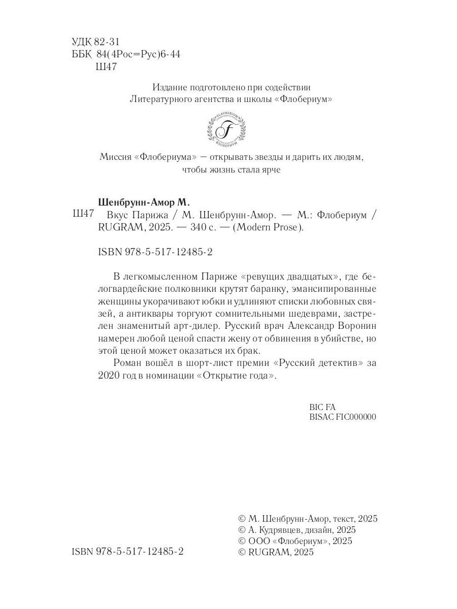 В легкомысленном Париже «ревущих двадцатых», где белогвардейские полковники крутят баранку, эмансипированные женщины укорачивают юбки и удлиняют списки любовных связей, а антиквары торгуют сомнительными шедеврами, застрелен знаменитый арт-дилер. Русский врач Александр Воронин намерен любой ценой спасти жену от обвинения в убийстве, но этой ценой может оказаться их брак. Роман вошёл в шорт-лист премии «Русский детектив» за 2020 год в номинации «Открытие года».| Издательство | Т8 RUGRAM |