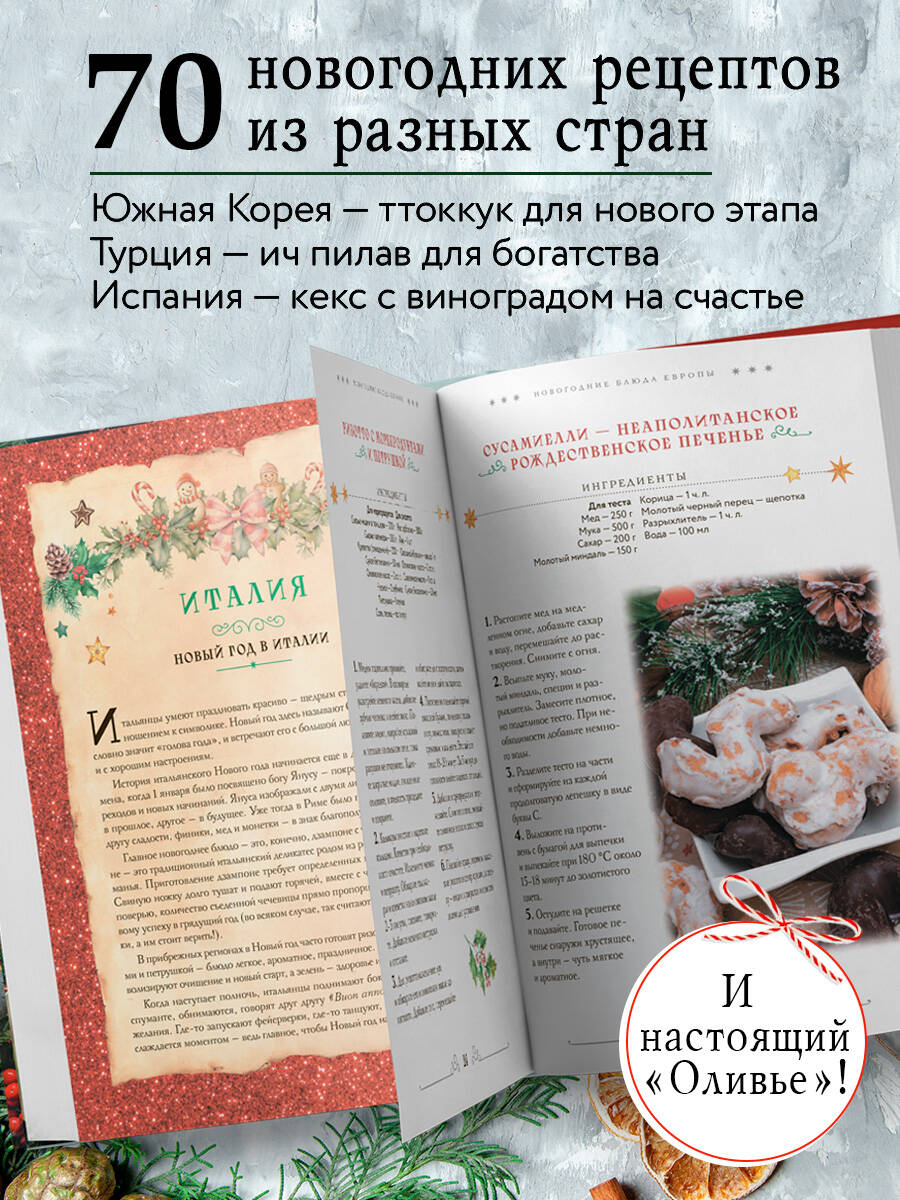 Устали от оливье и селедки под шубой? Мечтаете о волшебном новогоднем столе, который удивит и порадует близких? Тогда эта книга - ваш билет в гастрономическое путешествие по самым ярким и вкусным новогодним традициям разных стран! Представьте: под бой курантов вы поднимаете бокал не только за счастье, но и за новый, неизведанный вкус. На вашем столе - не просто набор привычных блюд, а настоящее произведение искусства, созданное по рецептам, бережно хранимым веками в разных уголках планеты. В этой книге мы собрали лучшие новогодние рецепты со всего мира, чтобы вы смогли: • Окунуться в атмосферу праздника. Узнайте, как встречают Новый год под жарким солнцем Австралии и в заснеженной Европе, в таинственной Азии и колоритной Латинской Америке! • Приготовить необычные и вкусные блюда. От итальянской чечевицы, приносящей богатство, до японской лапши, символизирующей долголетие, - каждый рецепт несет в себе глубокий смысл и неповторимый вкус. • Удивить своих гостей. Создайте незабываемый новогодний стол, который станет главным украшением праздника. • Расширить свой кулинарный кругозор. Познакомьтесь с секретами приготовления национальных блюд и попробуйте новые продукты и специи. • Создать свои семейные традиции. Приготовьте вместе с близкими новые блюда и внесите их в свою копилку новогодних воспоминаний.| Издательство | ООО "Издательство "Эксмо" |