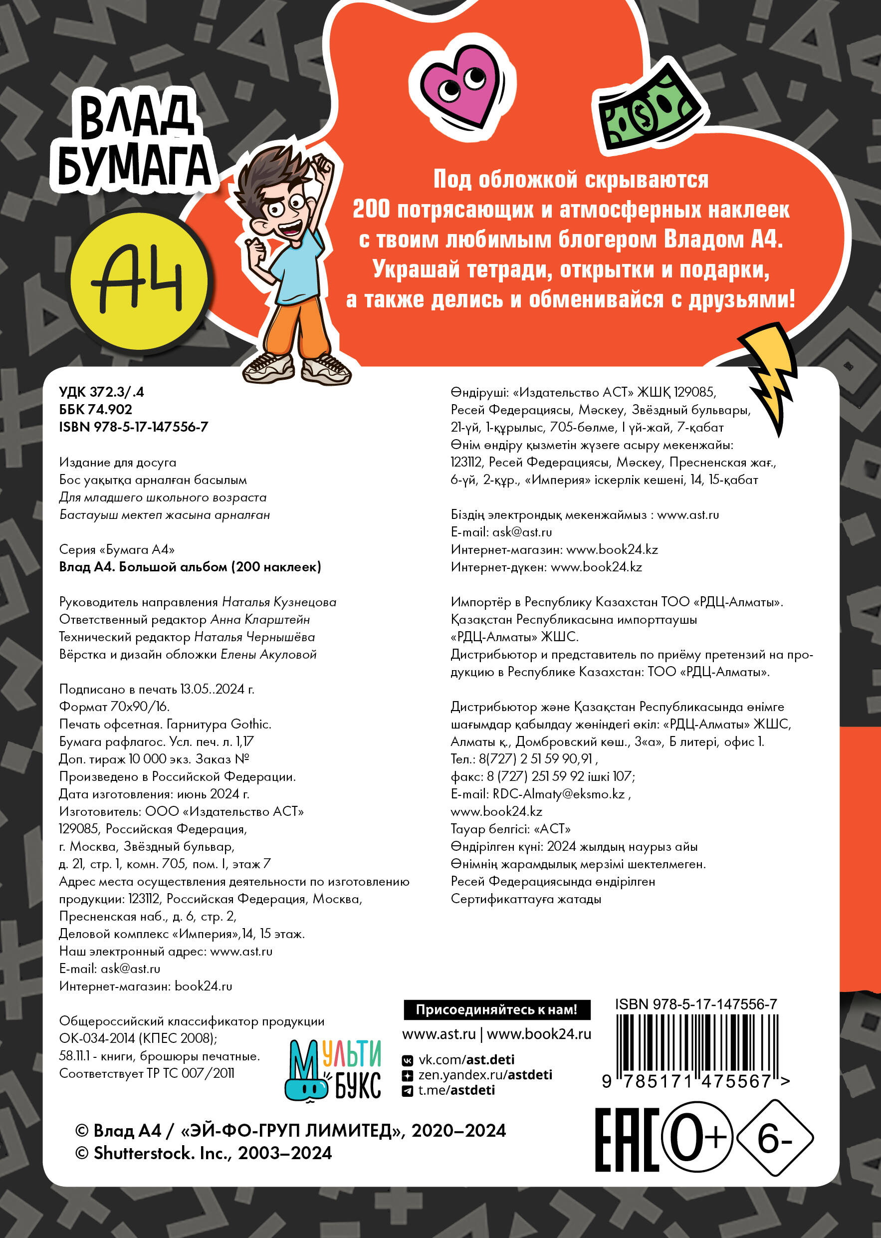Аннотация: Влад А4. Большой альбом 200 наклеек
