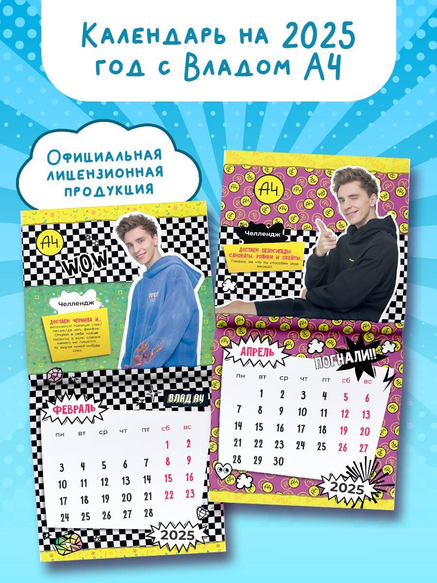Календарь на 2025 год для всех поклонников Влада А4! Каждый месяц тебя и твоих друзей ждут новые классные челленджи!