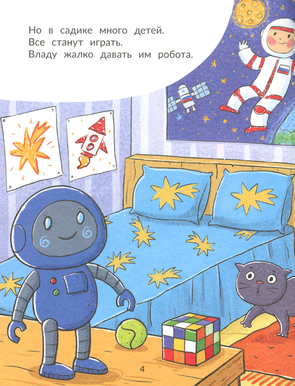 Ева и Влад друзья. Им по шесть лет. Они ходят в садик, гуляют во дворе, лазают по деревьям. А ещё у Влада есть кот. Серия книг о Еве и Владе для детей, только начинающих читать. Красочные иллюстрации - одно из достоинств серии. В каждой книге - короткая история из слов, состоящих не более чем из шести букв. Всего в серии четыре книги. Каждая следующая немного сложнее предыдущей. Предлагаемый порядок для чтения: 1. Ева идёт в гости. 2. Влад и дерево. 3. Влад и робот. 4. Ева не хочет есть суп.| Издательство | Феникс |