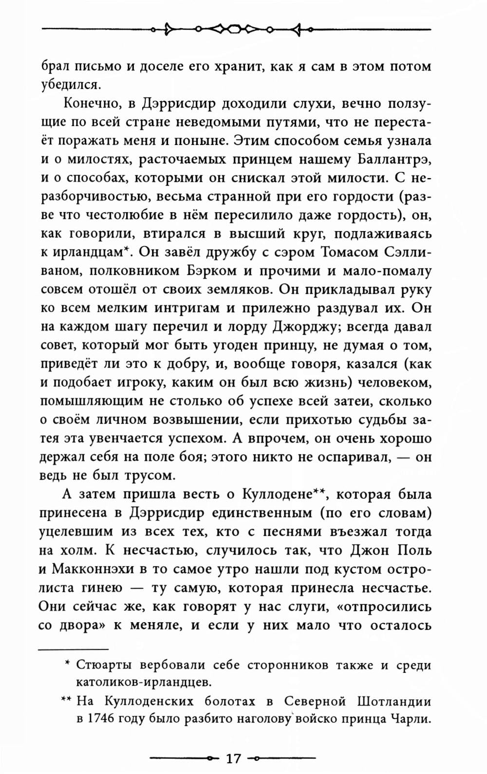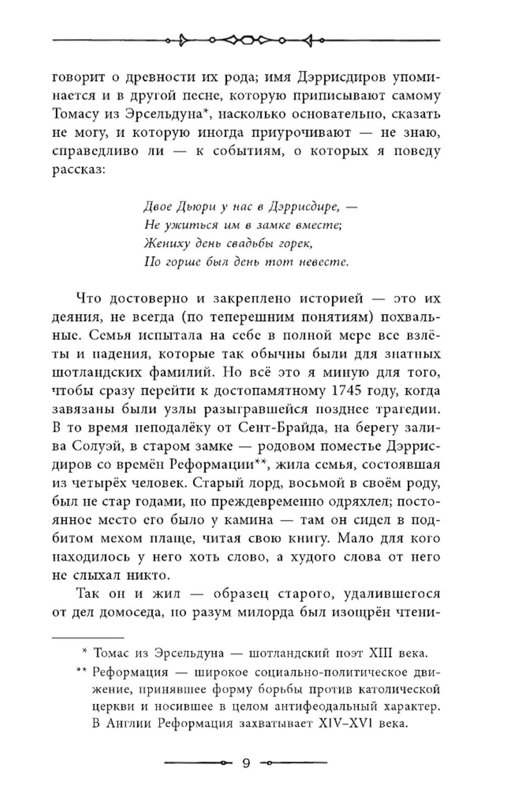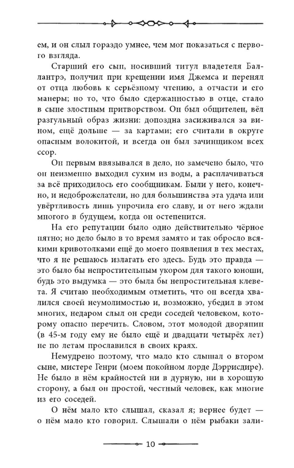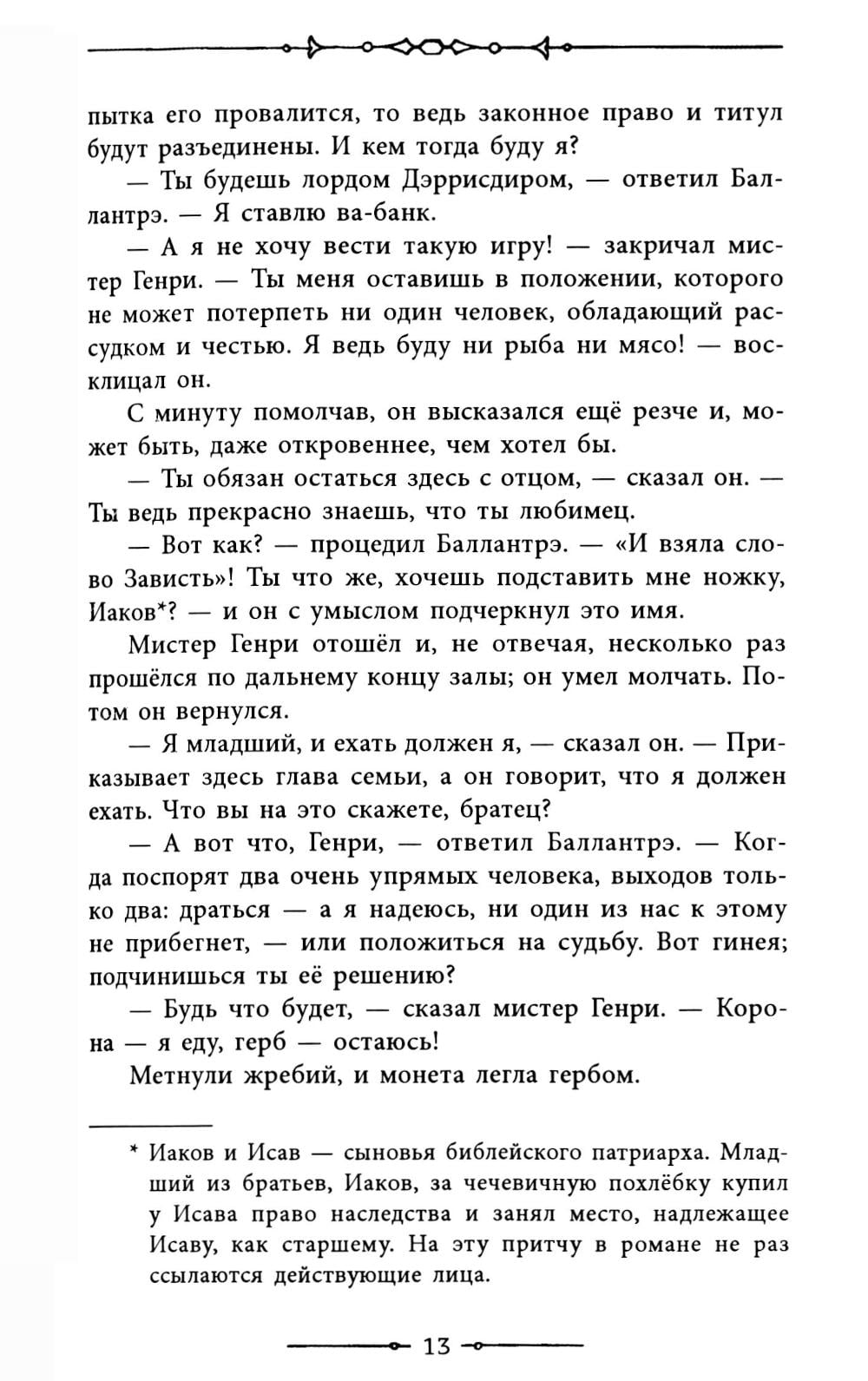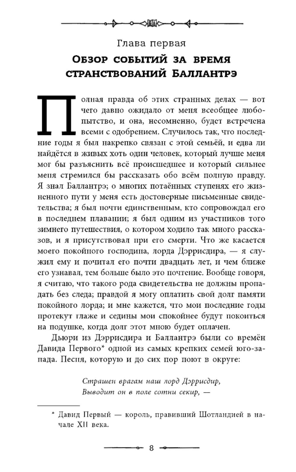 «Владетель Баллантрэ» считается вершиной творчества писателя, исследовавшего границы добра и зла в человеческой природе. История шотландской семьи пронизана непримиримой враждой двух братьев, которая постепенно губит их обоих. Эгоистичного беспринципного авантюриста и самоотверженного благородного главу семьи объединяет глубокое чувство - ненависть. Она наполняет их жизнь интригами, скитаниями, тяжёлыми испытаниями, делая её непредсказуемой и драматичной. В оформлении книги использованы оригинальные иллюстрации известного художника Уильяма Хоула.| Издательство | Изд. Лабиринт Пресс |