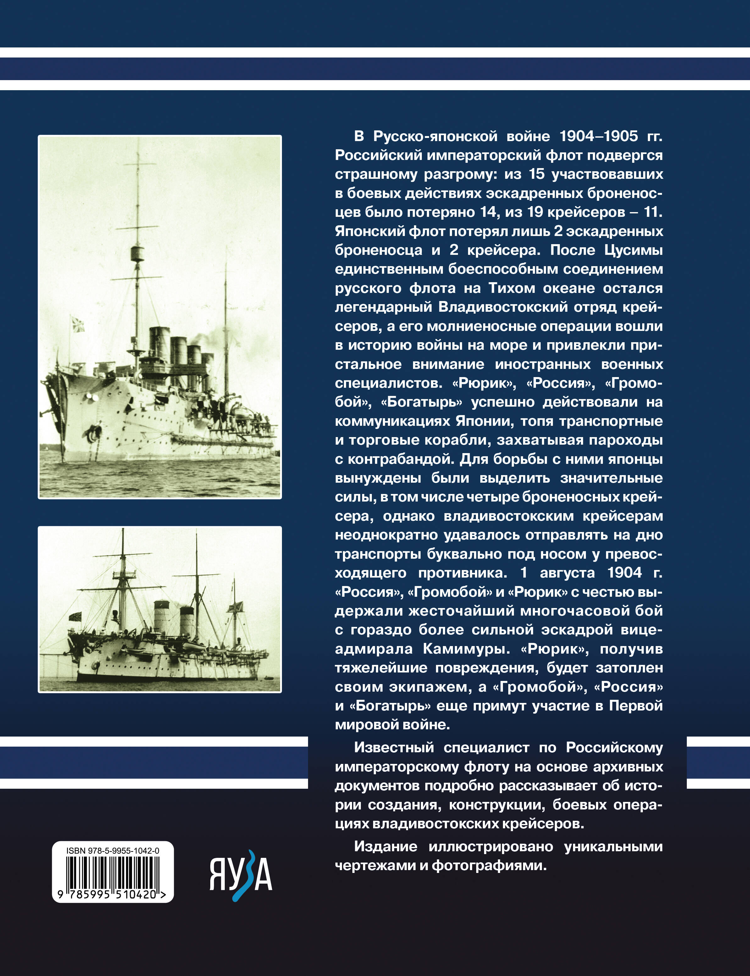 В Русско-японской войне 1904-1905 гг. Российский императорский флот подвергся страшному разгрому: из 15 участвовавших в боевых действиях эскадренных броненосцев было потеряно 14, из 19 крейсеров - 11. Японский флот потерял лишь 2 эскадренных броненосца и 2 крейсера. После Цусимы единственным боеспособным соединением русского флота на Тихом океане остался легендарный Владивостокский отряд крейсеров, а его молниеносные операции вошли в историю войны на море и привлекли пристальное внимание иностранных военных специалистов. «Рюрик», «Россия», «Громобой», «Богатырь» успешно действовали на коммуникациях Японии, топя транспортные и торговые корабли, захватывая пароходы с контрабандой. Для борьбы с ними японцы вынуждены были выделить значительные силы, в том числе четыре броненосных крейсера, однако владивостокским крейсерам неоднократно удавалось отправлять на дно транспорты буквально под носом у превосходящего противника. 1 августа 1904 г. «Россия», «Громобой» и «Рюрик» с честью выдержали жесточайший многочасовой бой с гораздо более сильной эскадрой вице-адмирала Камимуры. «Рюрик», получив тяжелейшие повреждения, будет затоплен своим экипажем, а «Громобой», «Россия» и «Богатырь» еще примут участие в Первой мировой войне. Известный специалист по Российскому императорскому флоту, на основе архивных документов, подробно рассказывает об истории создания, конструкции, боевых операциях владивостокских крейсеров. Издание иллюстрировано уникальными чертежами и фотографиями.| Издательство | Яуза-пресс ООО |