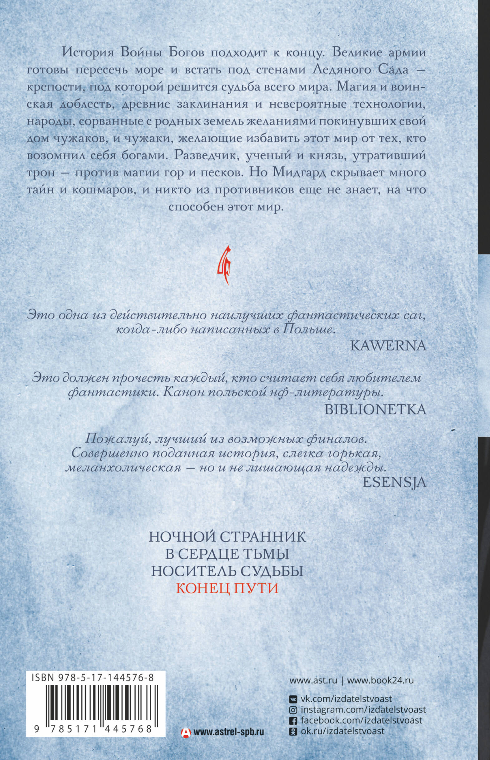 История Войны Богов подходит к концу. Великие армии готовы пересечь море и встать под стенами Ледяного Сада - крепости, под которой решится судьба всего мира. Магия и воинская доблесть, древние заклинания и невероятные технологии, народы, сорванные с родных земель желаниями покинувших свой дом чужаков, и чужаки, желающие избавить этот мир от тех, кто возомнил себя богами. Разведчик, ученый и князь, утративший трон - против магии гор и песков. Но Мидгард скрывает много тайн и кошмаров, и никто из противников еще не знает, на что способен этот мир.| Издательство | ИЗДАТЕЛЬСТВО "АСТ" |