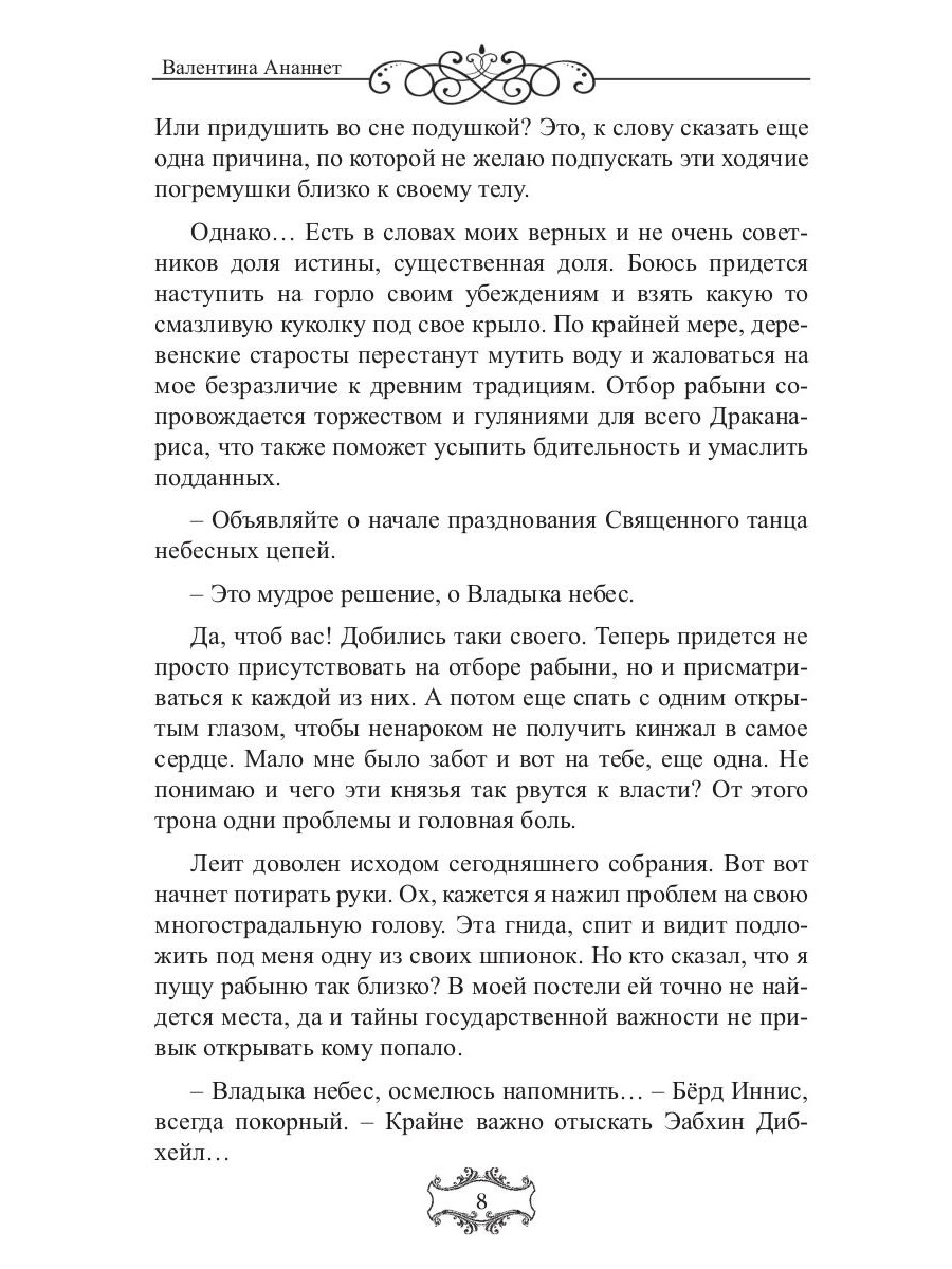 Я Арден Хаммел, из рода огненных драконов, Верховный князь Флаймингера, Владыка небес Драканариса, вынужден прислушиваться к желаниям низших. Ради чего? Разве моя воля не закон? Через пару дней начнется празднование Священного танца небесных цепей. С одной стороны, мне интересно посмотреть на армию красавиц, сражающихся за право быть рядом со мной, с другой… Мне придется выбрать одну из них, заковать в цепи, назвать своей рабыней и пользоваться ей как мне заблагорассудится. А вот что именно мне заблагорассудится, не знаю даже я сам.| Издательство | Т8 RUGRAM |