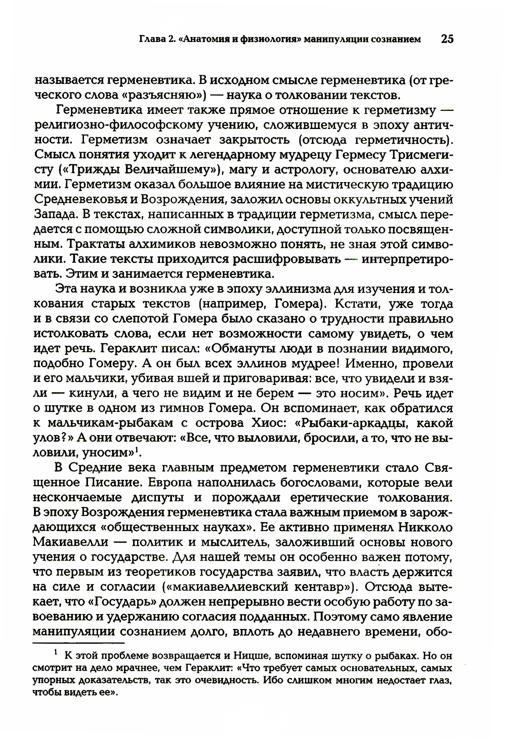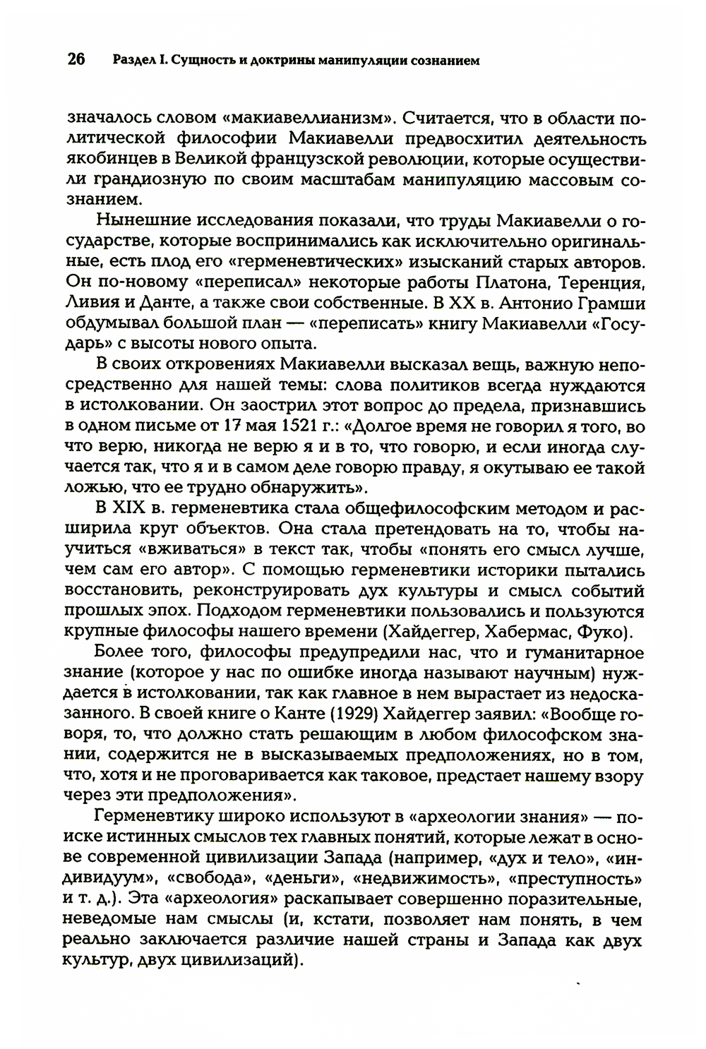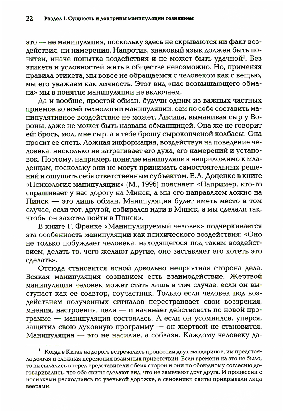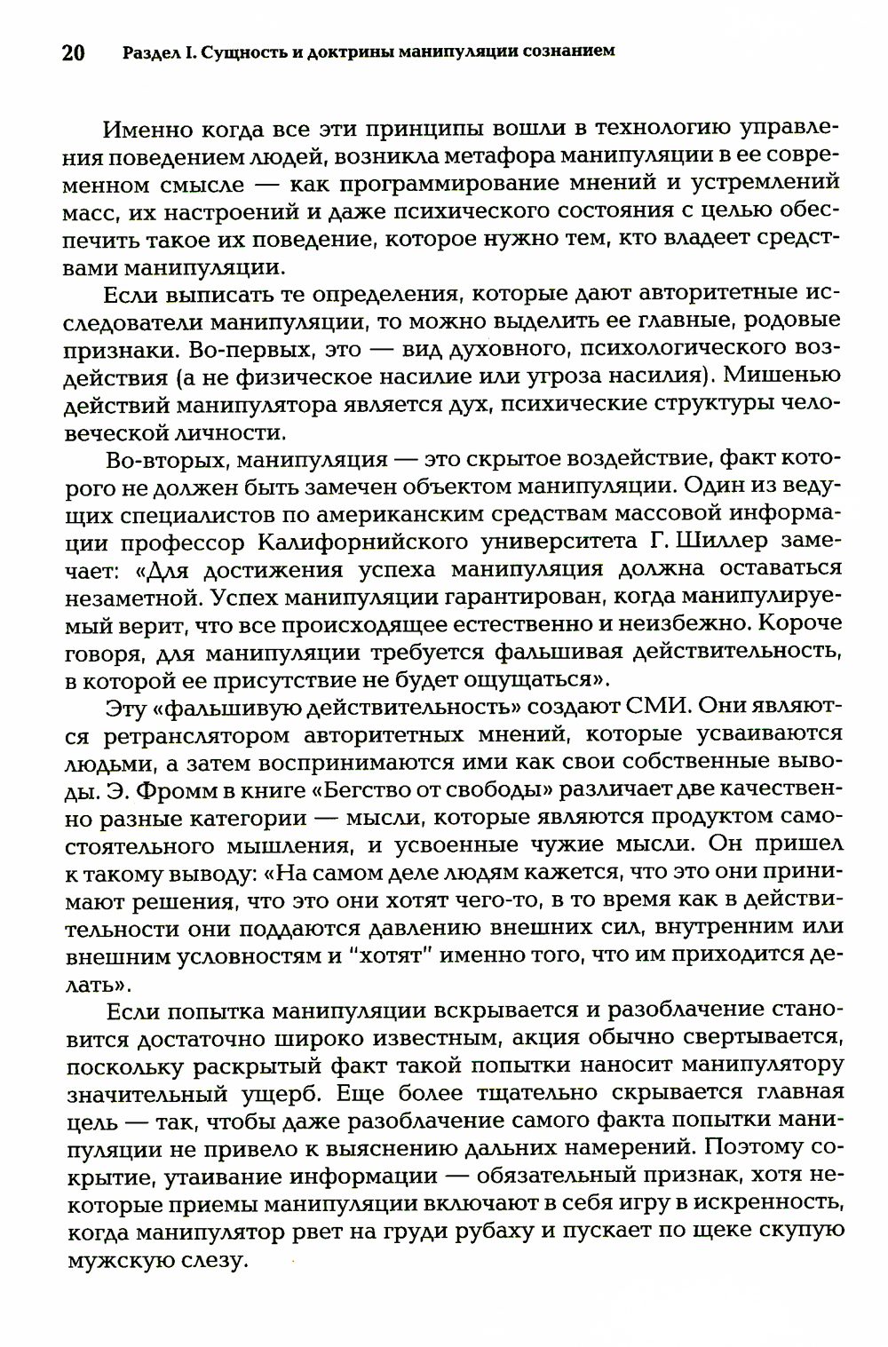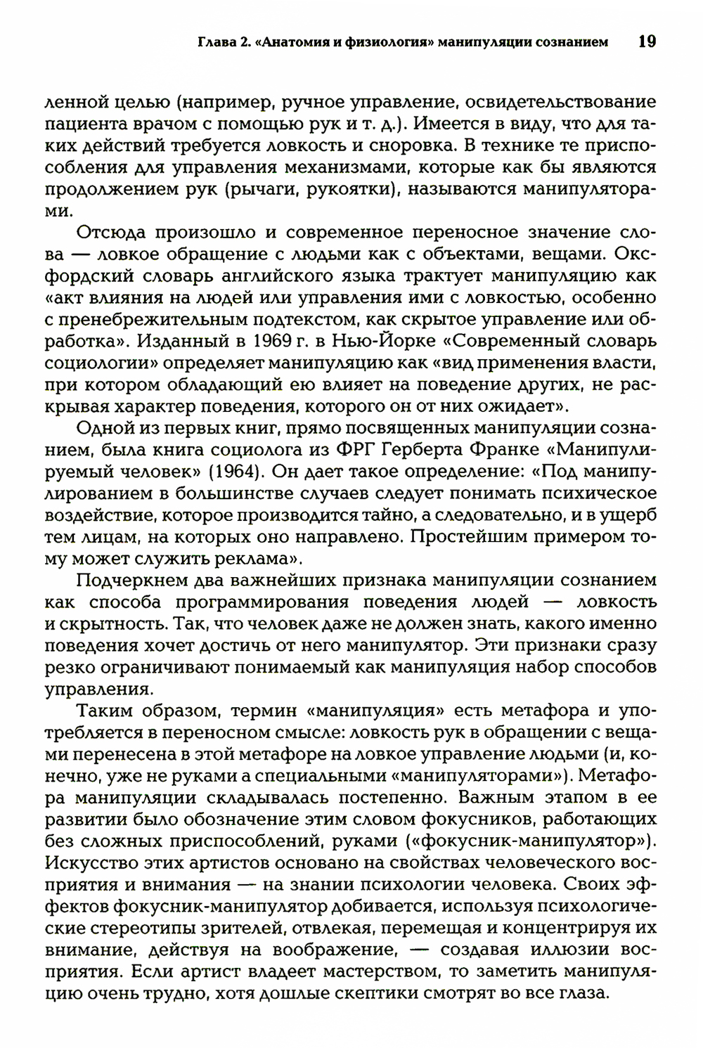 В книге всесторонне исследуются методы и формы манипуляции общественным сознанием, имеющей своей целью «зомбирование», роботизацию человека. Автор считает, что уже в настоящее время деятельность по манипуляции общественным сознанием «изменила облик мира и затронула практически каждого жителя планеты», в особенности читателя и телезрителя. Занимая позицию неприятия технологий такого рода, автор утверждает, что именно через отношение к манипуляции сознанием (законна ли она и имеет ли моральные оправдания) определится цивилизационный и культурный выбор новой России: «это не выбор президента, партии и даже политического строя. Речь идет о выборе жизнеустройства». Для психологов, политологов, социологов, а также всех, кто интересуется механизмами манипуляции общественным сознанием.| Издательство | Академический проект |