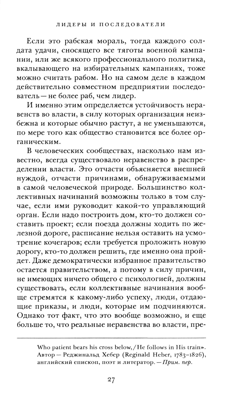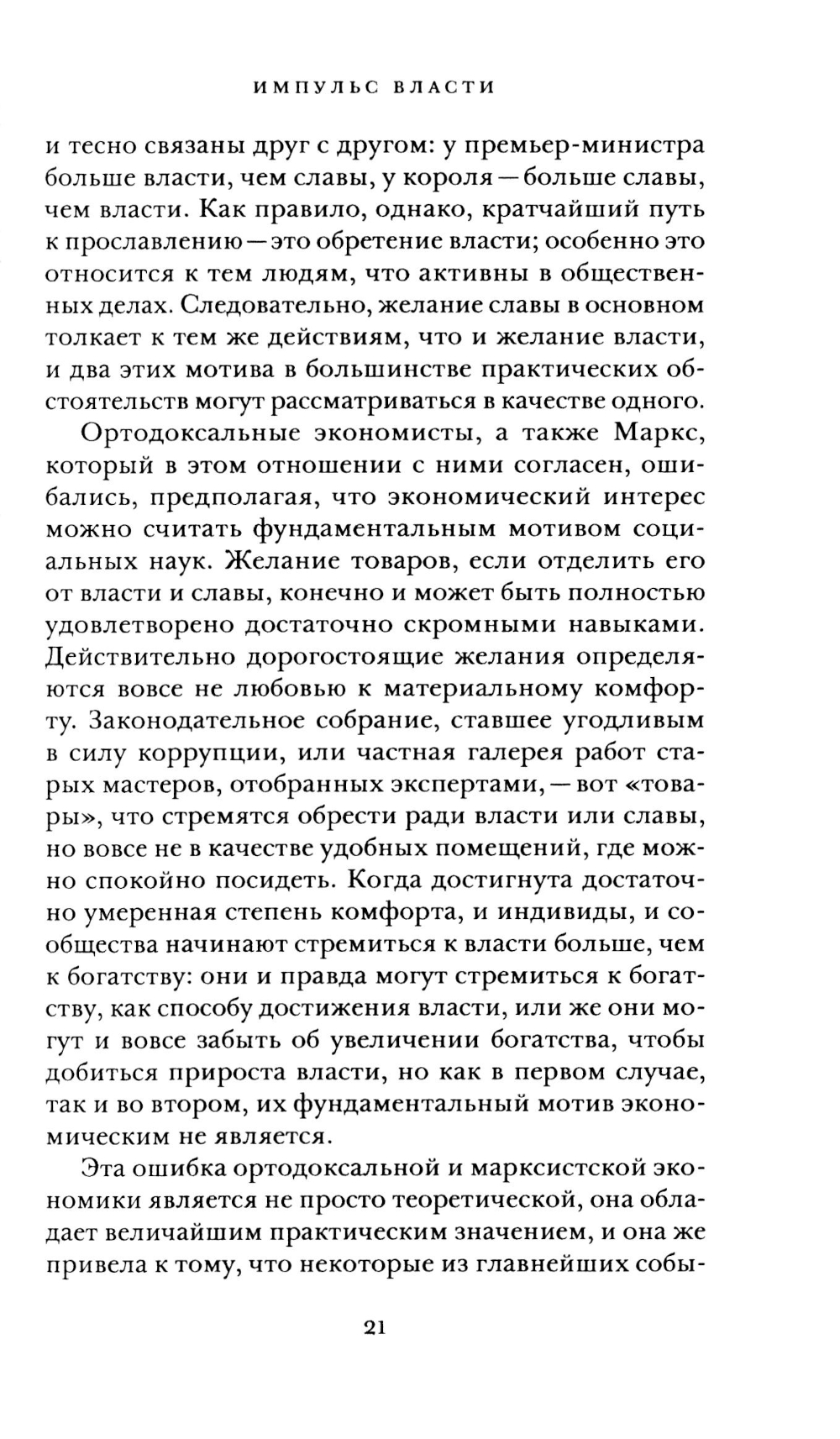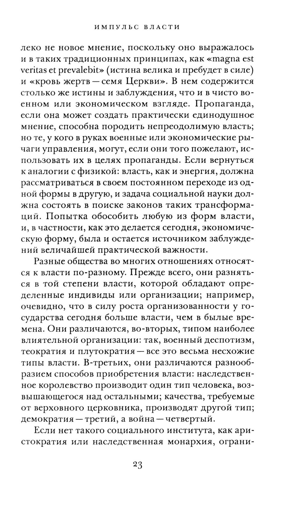 Маркс видел ключ к человеческой природе в богатстве, Фрейд в сексе, а Бертран Рассел во власти. Власть, утверждает он, является конечной целью человека и, в самых разных обличьях, важнейшим элементом развития любого общества. В конце 1930-х годов, когда Европу раздирали экстремистские идеологии, а мир стоял на пороге войны, Рассел решил основать «новую науку», чтобы осмыслить травмирующие события того времени и объяснить те, что последуют за ними. Так появилась «Власть» (1938), замечательная книга, которую Рассел считал одной из самых важных в своей долгой карьере. Выступая против тоталитарного стремления к господству, он показывает, как политическое просвещение и человеческое понимание могут привести к миру. Его книга это страстный призыв к независимости разума и прославление инстинктивной радости человеческой жизни.| Издательство | Изд. Института Гайдара |