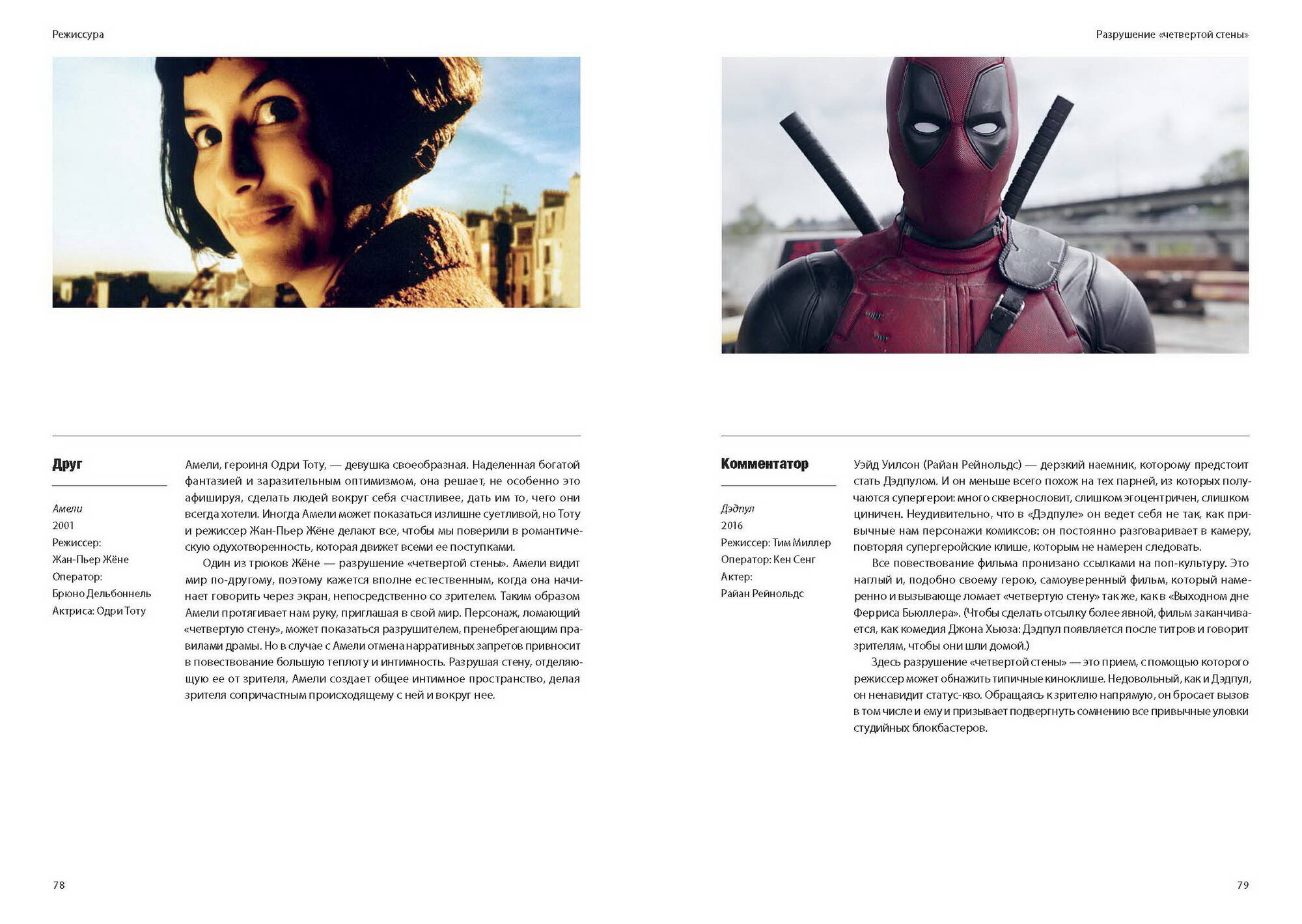Изучайте приемы создания кино через фильмы, которые вы знаете и любите. Используя ключевые сцены из самых известных фильмов, Тим Грирсон исследует все: от кинематографии до секретов общения с камерой. Например, понятие "большая глубина резкости" он объясняет через "Гражданина Кейна", форсированную перспективу - через "Эльфа", а замедленную съемку через сцены из "Бешеных псов". Примеры из блокбастеров ("Чудо-женщина") и лауреатов "Оскара" ("Рокки"), жемчужин эпохи немого кино ("Нетерпимость") и недавних сокровищ арт-хауса ("Американский мед") дают читателям представление о широте и потенциале кинематографа. Увлекательное чтение для любителей кино, которые хотят понять, что происходит за камерой, и полезное руководство для студентов и новичков в этой отрасли. В книге есть разделы об актерском мастерстве, режиссуре, освещении и камере, сценарном деле и редактировании, а также вся техническая информация, необходимая для начала кинокарьеры. Режиссеры, приемы которых рассматриваются в книге: Стивен Спилберг, Мартин Скорсезе, София Коппола, Спайк Ли, Фрэнсис Форд Коппола, Стэнли Кубрик, Альфред Хичкок, Барри Дженкинс, Чарли Чаплин, Роман Полански, Андреа Арнольд, Тим Бертон, Кеннет Брана, Пэтти Дженкинс и другие. Фильмы, о которых вы узнаете из книги: "Звездные войны", "Начало", "Мстители", "Чудо-женщина", "Сияние", "Социальная сеть", "Реквием по мечте", "Крестный отец", "Хорошее время", "Омерзительная восьмерка", "Рокки", "Престиж", "Амели", "Унесенные ветром", "Бешеные псы", "Кинг-Конг" и другие.| Издательство | МИФ ООО |