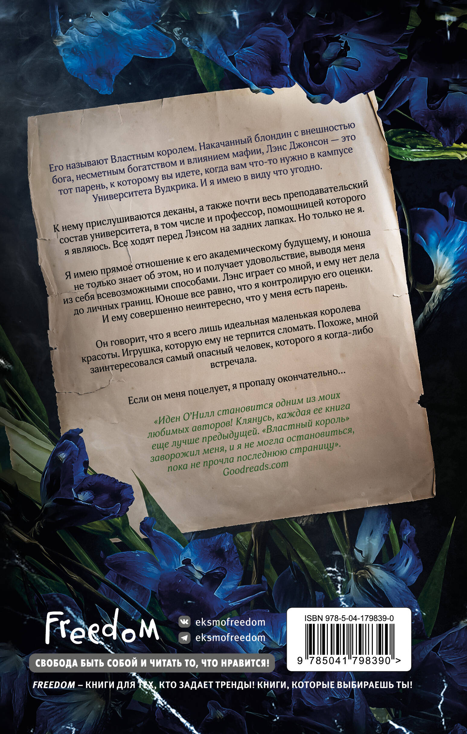 Вторая книга чувственной и драматичной серии «Короли кампуса», в основе которой троп «от врагов к возлюбленным»! Сильные истории, где много драмы и страсти! Каждая книга про разных героев, их можно читать отдельно! Придется по душе поклонникам Л. Дж. Шэн, Софи Ларк и Тилли Коул, а также фанатам сериалов «Элита» и «Сплетница»! Его называют властным королем. Накачанный блондин с внешностью бога, несусветным богатством и влиянием мафии. Лэнс Джонсон - это тот парень, к которому вы идете, когда вам что-то нужно в кампусе Университета Вудкрика. И я имею в виду что угодно. К нему прислушиваются деканы, а также почти весь преподавательский состав университета, в том числе и профессор, помощницей которого являюсь. Все ходят перед Лэнсом на задних лапках. Но только не я. Я имею прямое отношение к его академическому будущему, и юноша не только знает об этом, но и получает удовольствие, выводя меня из себя всевозможными способами. Лэнс играет со мной, и ему нет дела до личных границ. Юноше все равно, что я контролирую его оценки. И ему совершенно не интересно, что у меня есть парень. Он говорит, что я всего лишь идеальная маленькая королева красоты. Игрушка, которую ему не терпится сломать. Похоже, мной заинтересовался самый опасный человек, которого я когда-либо встречала. Если он меня поцелует, я пропаду окончательно… «Иден О'Нилл становится одним из моих любимых авторов! Клянусь, каждая ее книга еще лучше предыдущей. "Властный король" заворожил меня, и я не могла остановиться, пока не прочла последнюю страницу». - Goodreads.com| Издательство | ООО "Издательство "Эксмо" |