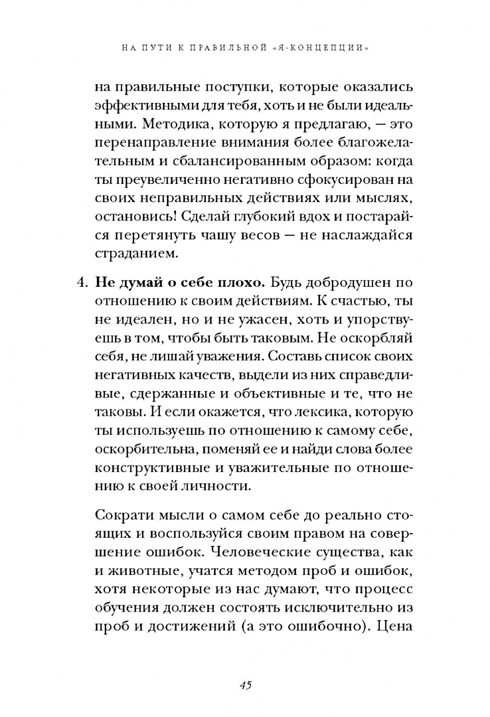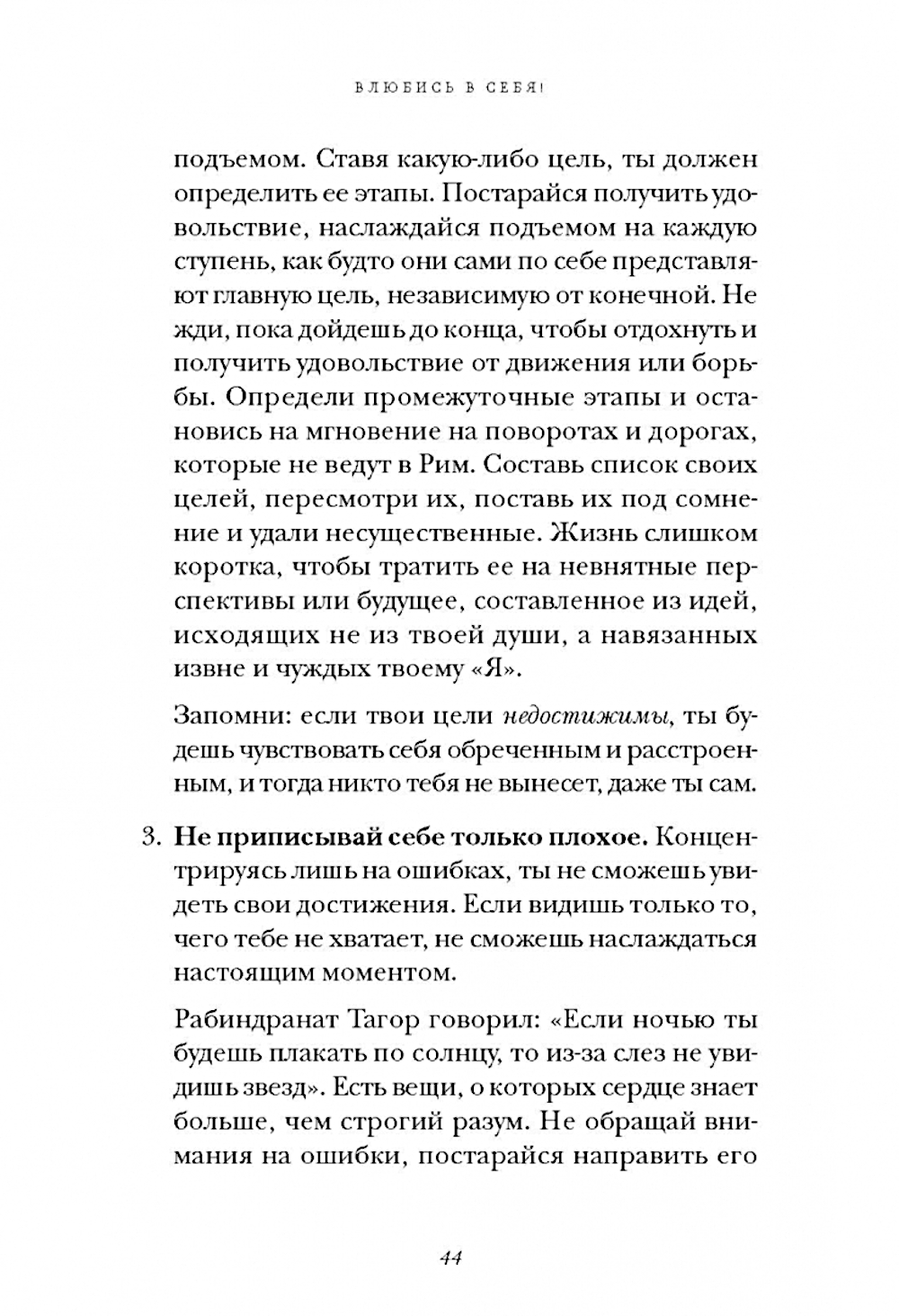 Мы находим время для детей, партнера, родителей, свекра и тещи, соседей, друзей, но мысль использовать свободную минуту для нас самих не приходит нам в голову. Собственное «Я» занимает последнее место в списке тех, кому мы готовы выразить свои чувства. Мы живем, постоянно откладывая вознаграждения, которых заслуживаем, и говорим: «Когда-нибудь я это сделаю», но этот день так и не приходит. Основываясь на многолетнем практическом опыте, Вальтер Рисо выделяет 4 компонента самоуважения и ведет читателя по пути обретения правильной самооценки. «Здоровое и правильно сформированное самолюбие исходит из следующего фундаментального принципа: "Я заслуживаю все то, что позволяет мне расти как личности и быть счастливым". З-а-с-л-у-ж-и-в-а-ю: именно так, наслаждаясь каждой буквой». Эта книга посвящена тем, кто недостаточно любит себя, живет, как в капсуле, прикованный к правилам, лишенным здравого смысла, не считаясь с самим собой. А еще тем, кто сумел полюбить себя, но из-за бешеного темпа жизни, когда многое отходит на второй план, потом забыл, как это делается. Рецепт этой книги одновременно простой и сложный: "Полюби себя; будь смелым; начни роман с самим собой, и с каждым днем будешь все счастливее, становясь более выносливым к ударам жизни.