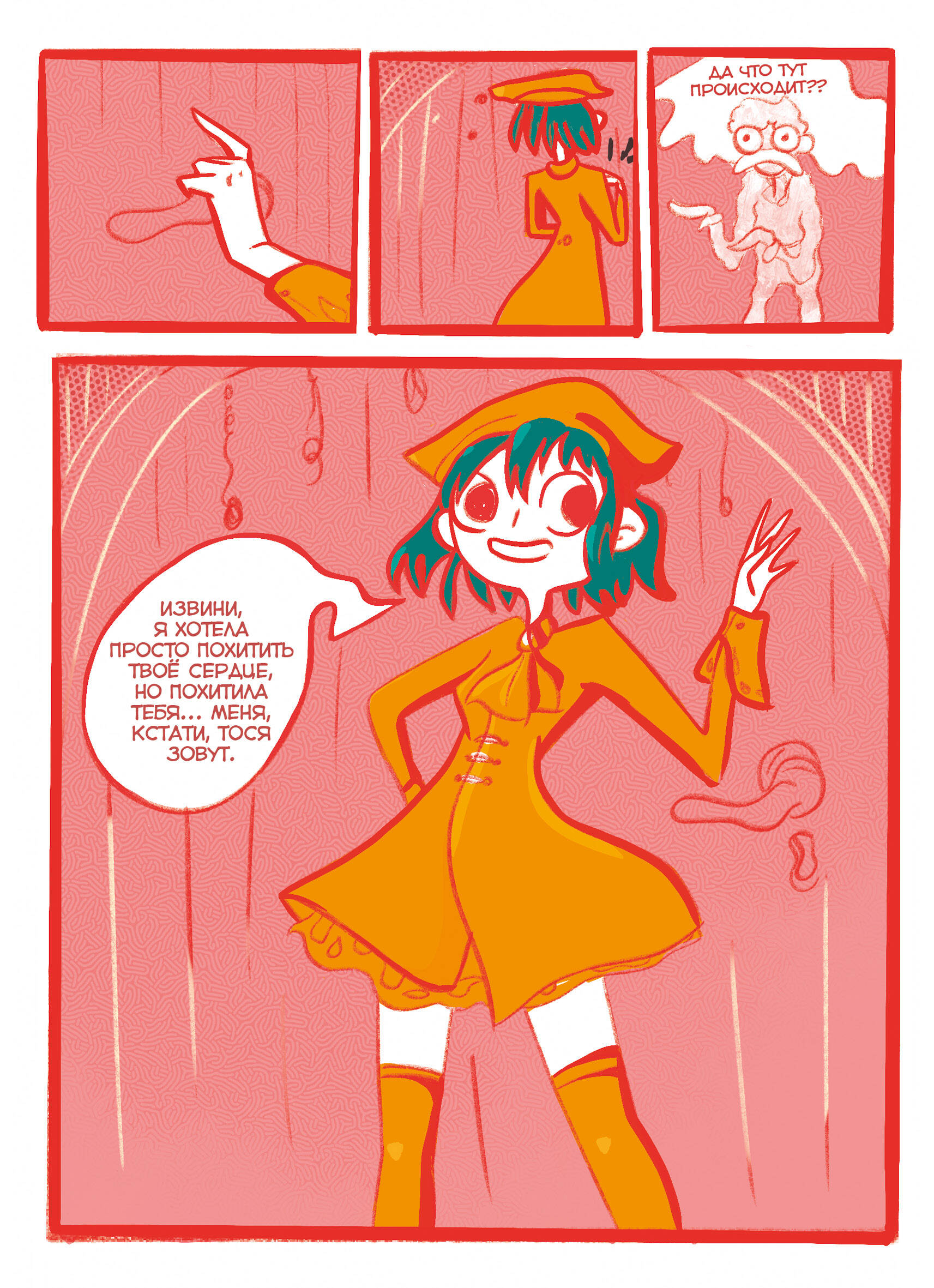 Дебютный комикс популярной блогерки Светы Дейдример рассказывает о жизни девушки Тоси. Ей 20 лет, она помогает своей соседке выгуливать мини-пига Мистера Томпсона, а ещё подрабатывает в местной библиотеке. В общем, днём она ведёт жизнь, не богатую на яркие события и безумные поступки, но по ночам… По ночам Тося видит сны о приключениях в фантастических мирах. Неужели этот яркий мир, полный впечатлений и веселья, так и останется уделом сна?.. Или Тосе удастся воплотить свои мечты в реальность? Это комикс о том, что жить нужно здесь и сейчас, мечтать совершенно не вредно, а люди вокруг тебя могут раскрыться с совершенно неожиданных сторон.| Издательство | ООО "Издательство "Эксмо" |