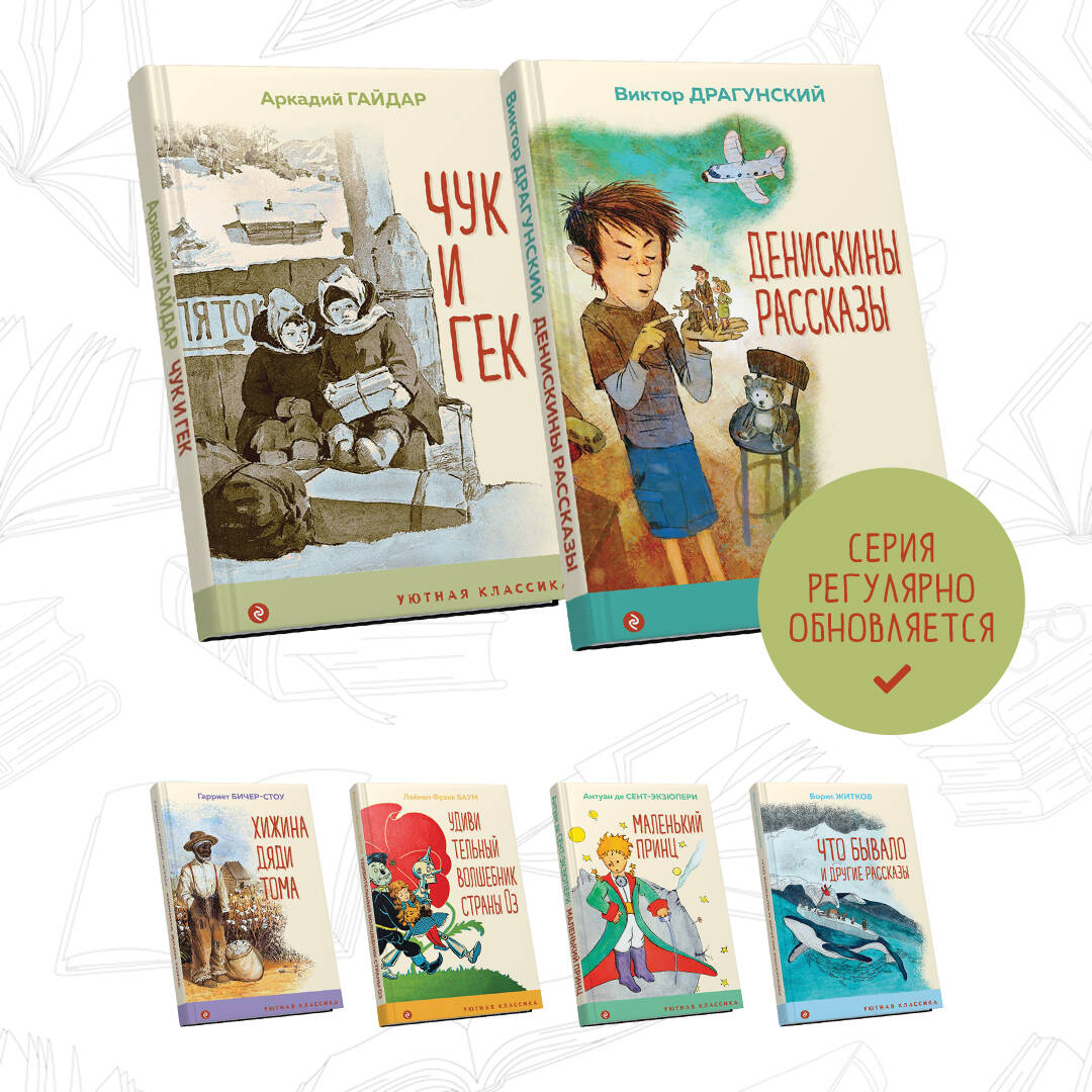 Классика детской приключенческой литературы в одном комплекте! На веселых похождениях любознательного Дениса Кораблева и его друга Мишки из «Денискиных рассказов» и захватывающем путешествии братьев Чука и Гека к отцу на Крайний север выросло уже не одно поколение. Курьезные истории, в которые попадают герои, помогают детям разобраться в том, что такое хорошо и что такое плохо, и находить выход из любой ситуации. «Денискины рассказы» проиллюстрированы Александром Храмцовым, а «Чук и Гек» снабжены оригинальными иллюстрациями Давида Дубинского.| Издательство | Эксмо |